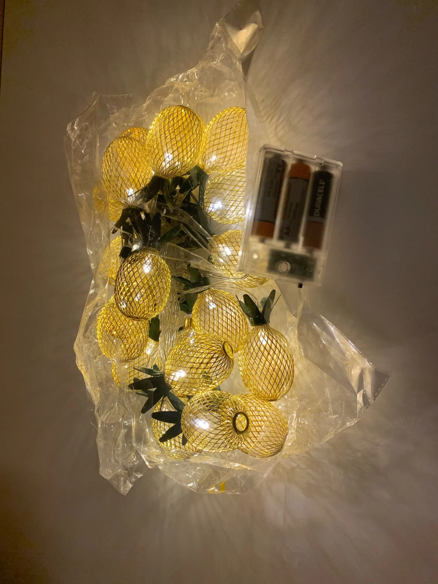 замечательная гирлянда, батарейки в комплекте не идут. упаковано надежно, не помялось, не поломалось ничего. батарейки вставила, всё работает. спасибо