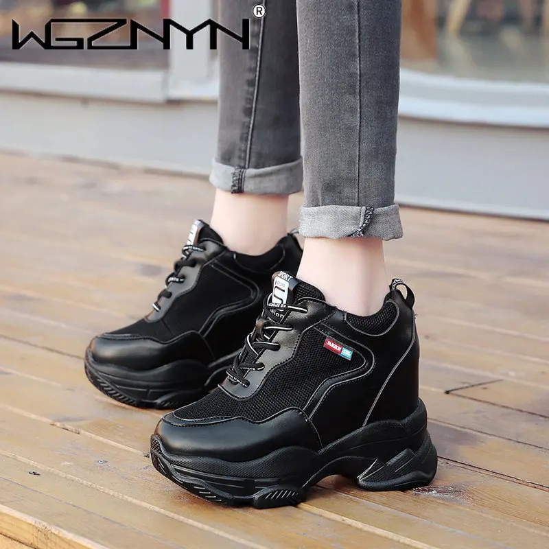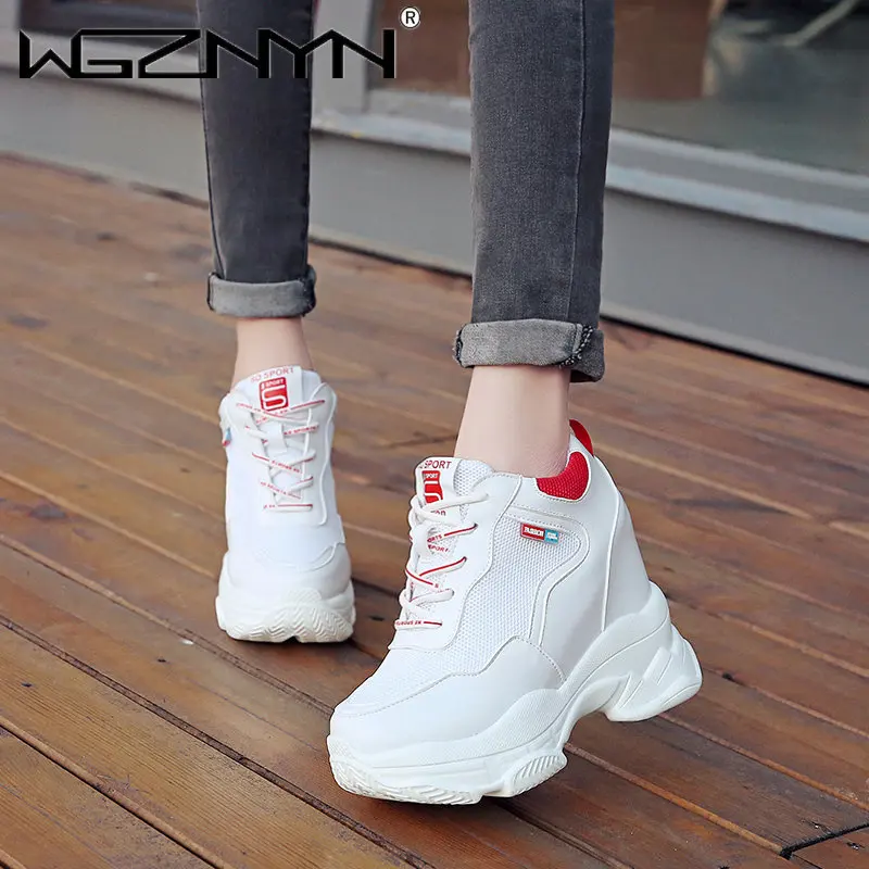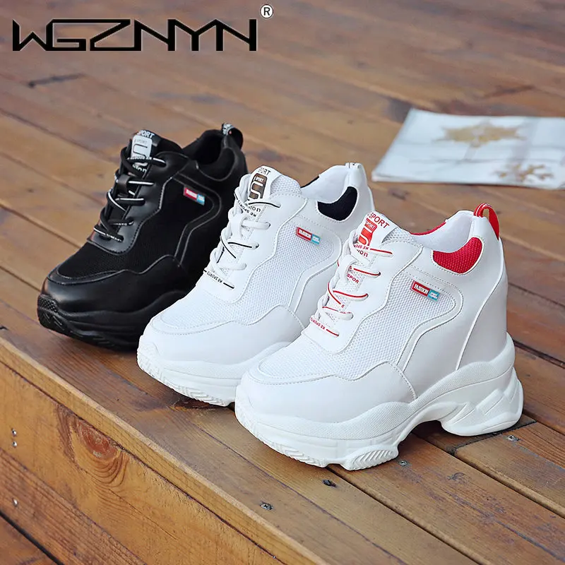 Новинка 2022, женская повседневная обувь WGZNYN, уличные женские кроссовки на очень высокой танкетке 12 см с липучкой, удобные кроссовки на платформе W005
