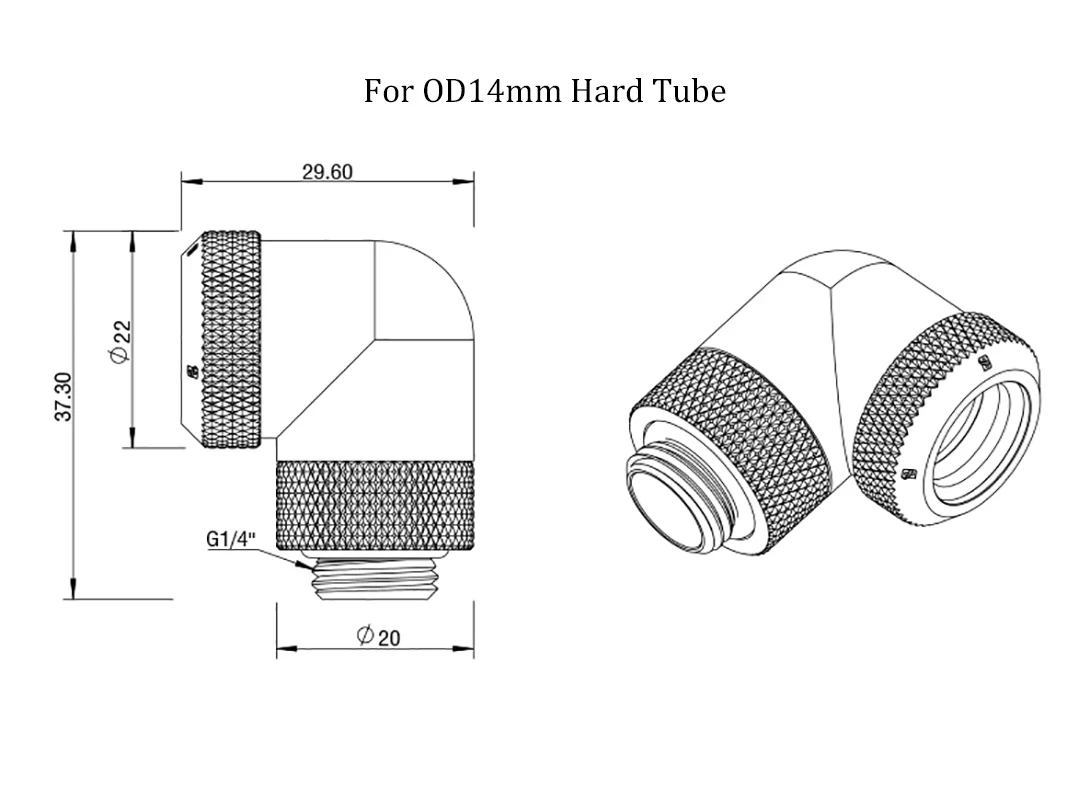 4 шт.лот G14 ''90 градусов OD14mm фитинг для жесткой трубки, ручной Компрессионный фитинг, вращающийся, подходит для наружной жесткой трубки 14 мм
