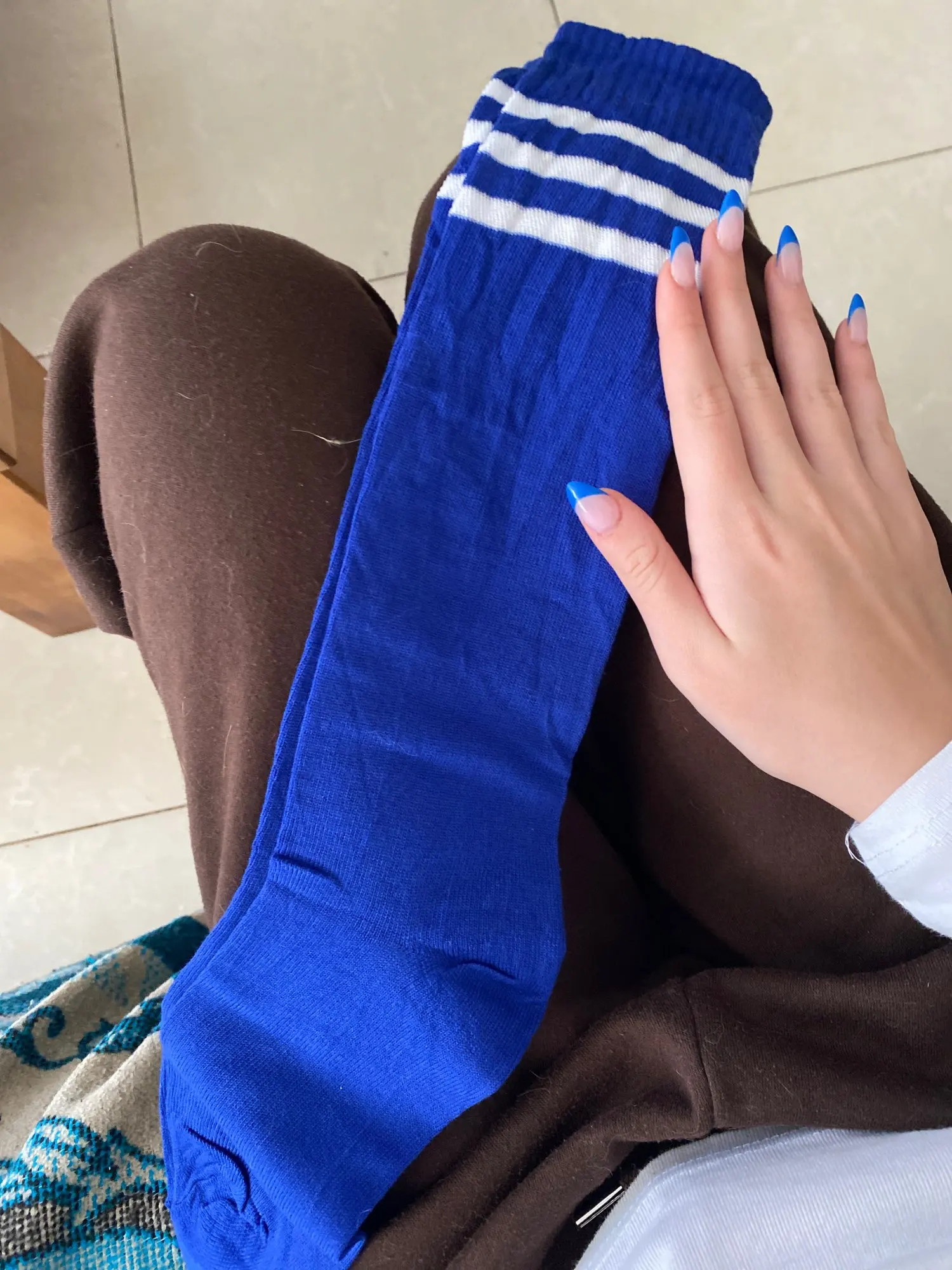 Новинка 2018, высокие носки выше колена для девочек, женские новые модные сексуальные полосатые длинные носки для чарлидинга