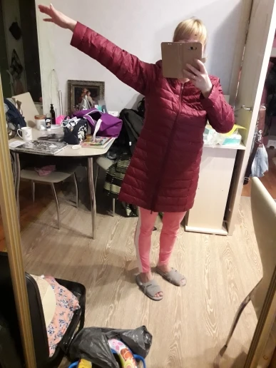 Оч быстрая доставка. Пальто отличное, лёгкое. Купила носить под другое пальто, как двойку для утепления. Тонкое, не дает полноты. Рекомендую однозначно! Спасибо)))