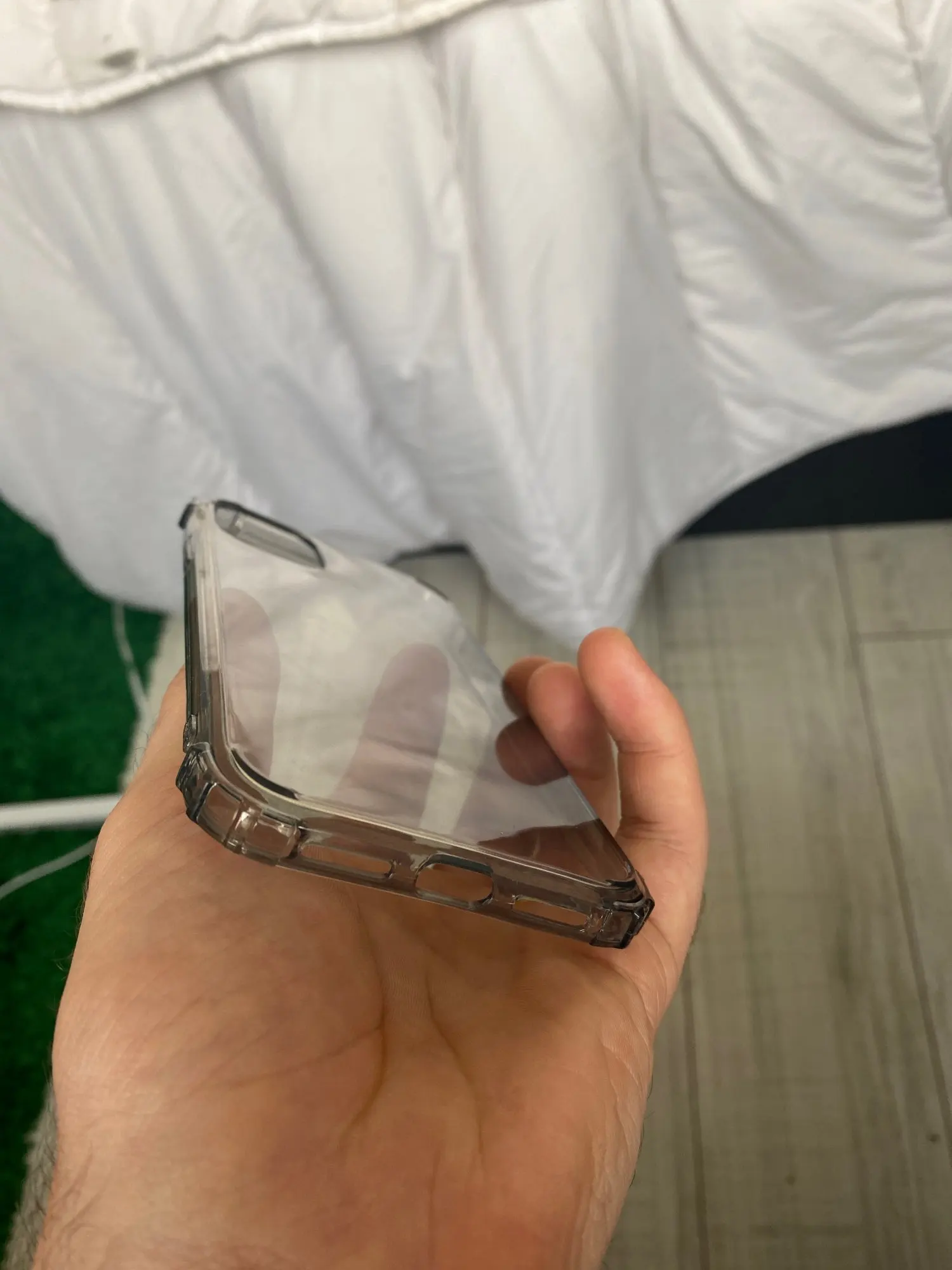 Отличный простой силиконовый чехол. Грани чехла квадратные,но руку не режет. Надеюсь борты спасут телефон при падении. При нажатии они поддаются, но не сильно мягкие. Кнопки хорошо нажимаются. Беспроводная зарядка работает. Пользуюсь с удовольствием. Спасибо огромное продавцу!!! Все круто!