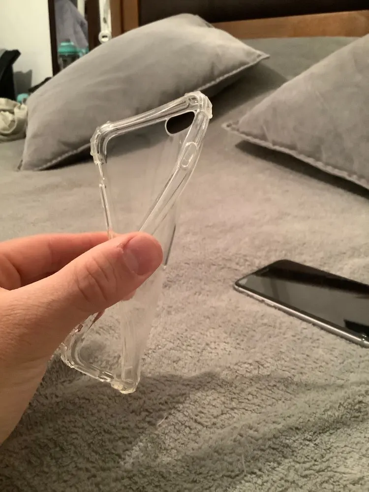 Чехол замечательный, тоненький, четко сел. Это мой уже третий такой чехол, до этого брала на 8+. Единственное, полностью прозрачный со временем желтеет, советую брать с другими оттенками