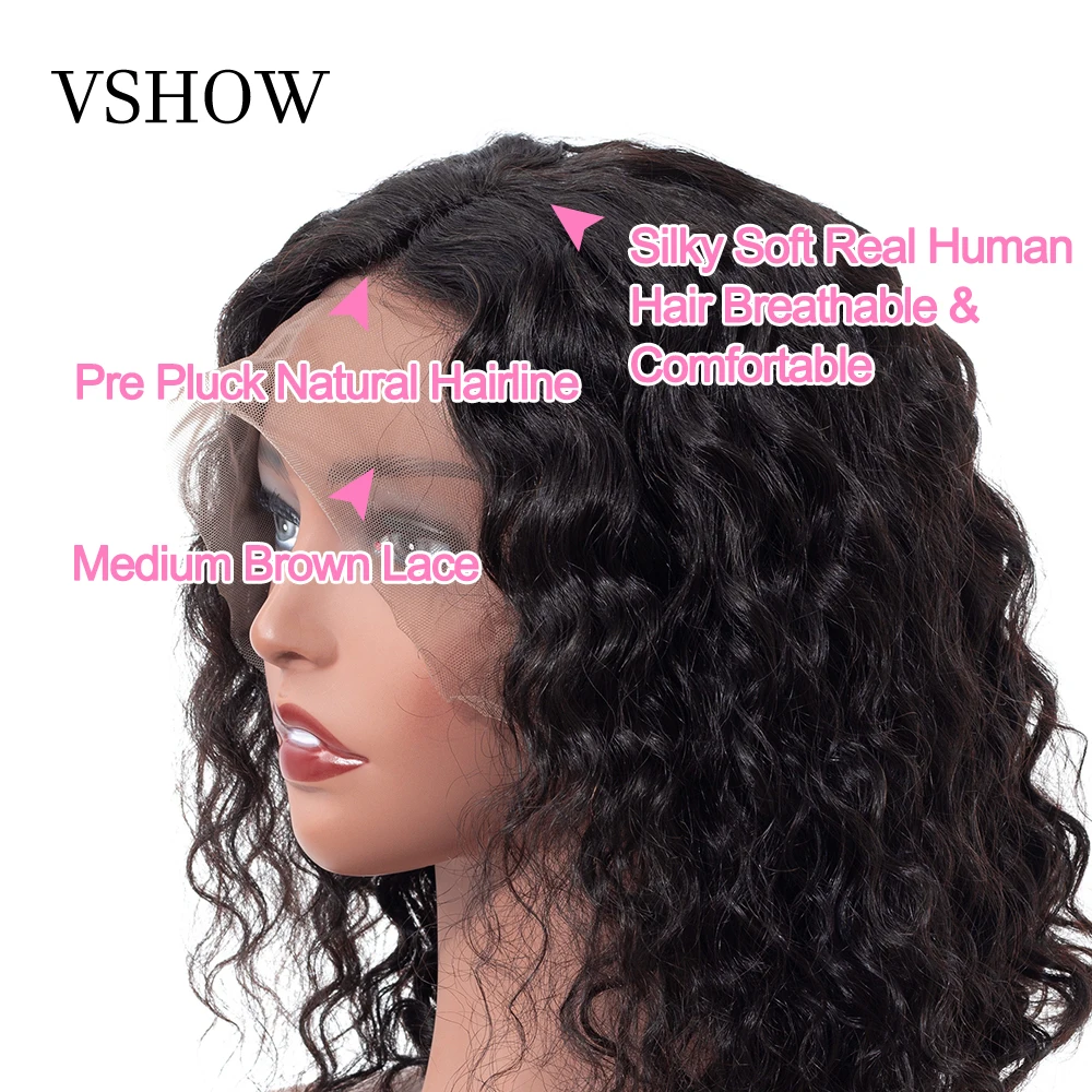 VSHOW 13x4 Волнистые Боб парики с детскими волосами короткий Боб Синтетические волосы на кружеве парики из натуральных волос с Африканской структурой, 150% 180% Синтетические волосы на кружеве парик