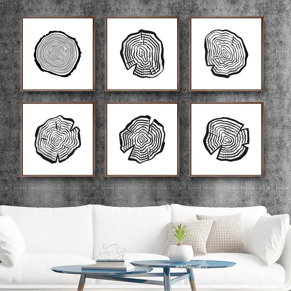 Украшение для дома, картина, печать, холст, настенные художественные фотографии, квадратный плакат, масло, без рамки, рисунки, годовое кольцо, черный и белый