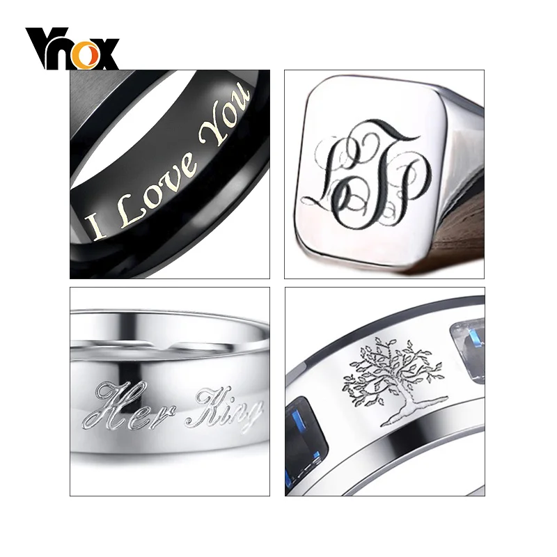 Выгравированное кольцо Vnox для женщин, однотонное кольцо-штамп из ...