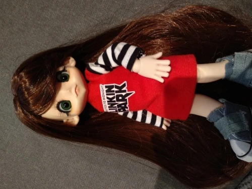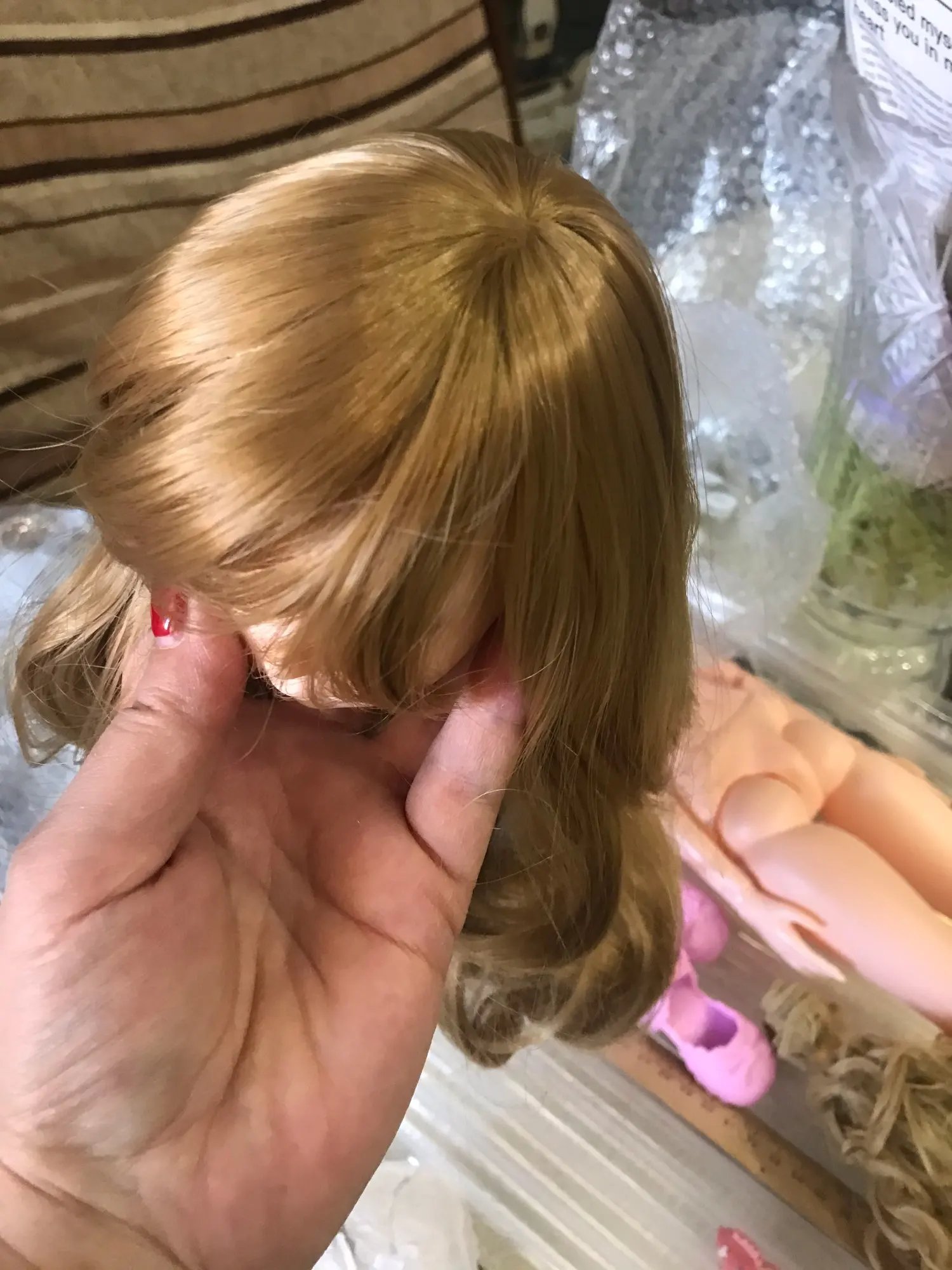 Красивый парик, немного большой для головы 1/4, за миниатюрную плату, которую вы должны сшить, чтобы отрегулировать. Бахрома очень длинная, она покрывает все лицо. Цвет почти такой же, как на фото, но немного более «желтый». К сожалению, посылка прибыла с лентой, чтобы содержимое не выходило из упаковки, я думаю, что она была открыта во время транспортировки и очень сильно закрыта...