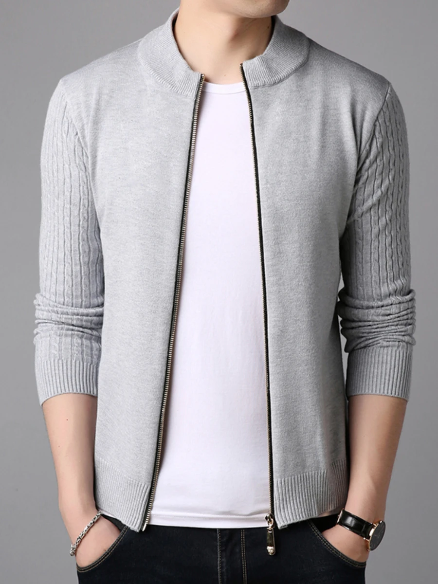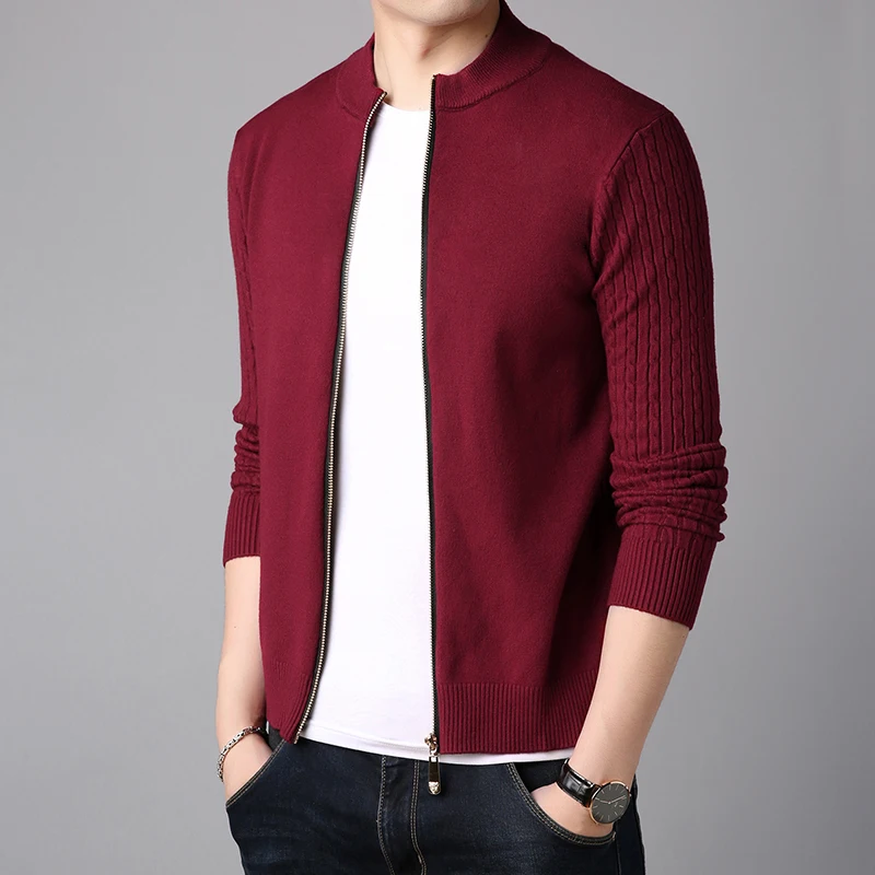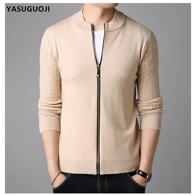 YASUGUOJI Новинка Осень 2022 Повседневный однотонный тонкий кардиган на молнии мужская мода вязаный лоскутный свитер с воротником-стойкой мужской натуральный