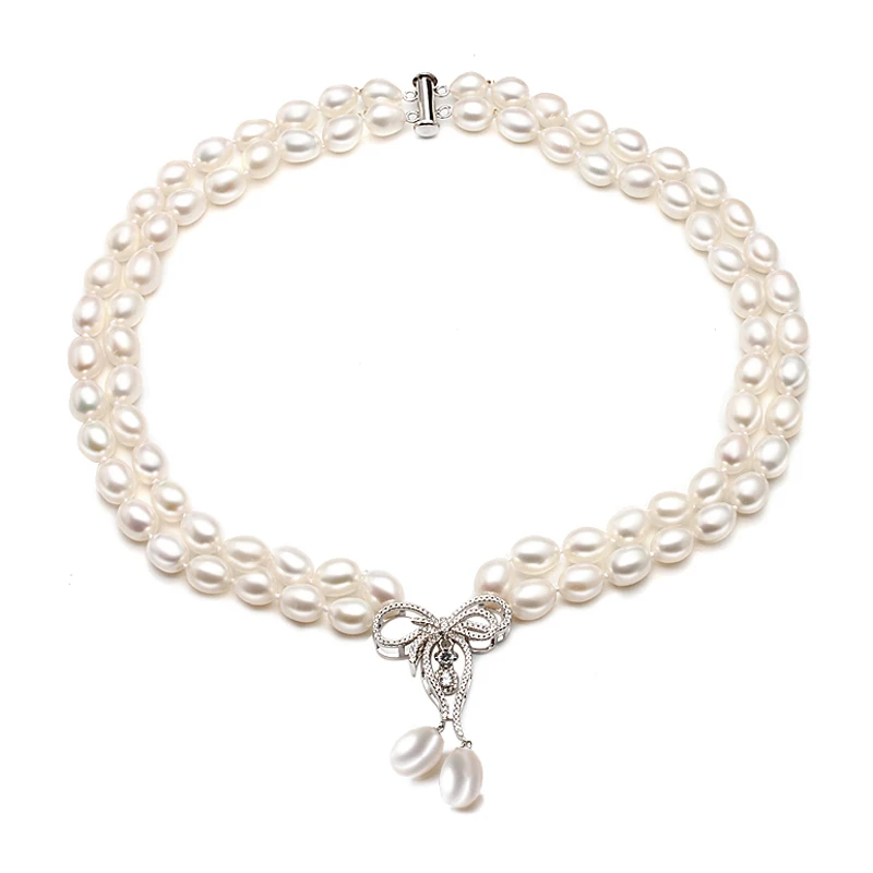 Свадебное ожерелье из натурального пресноводного жемчуга для женщин, ожерелье-чокер из двух нитей с искусственным жемчугом