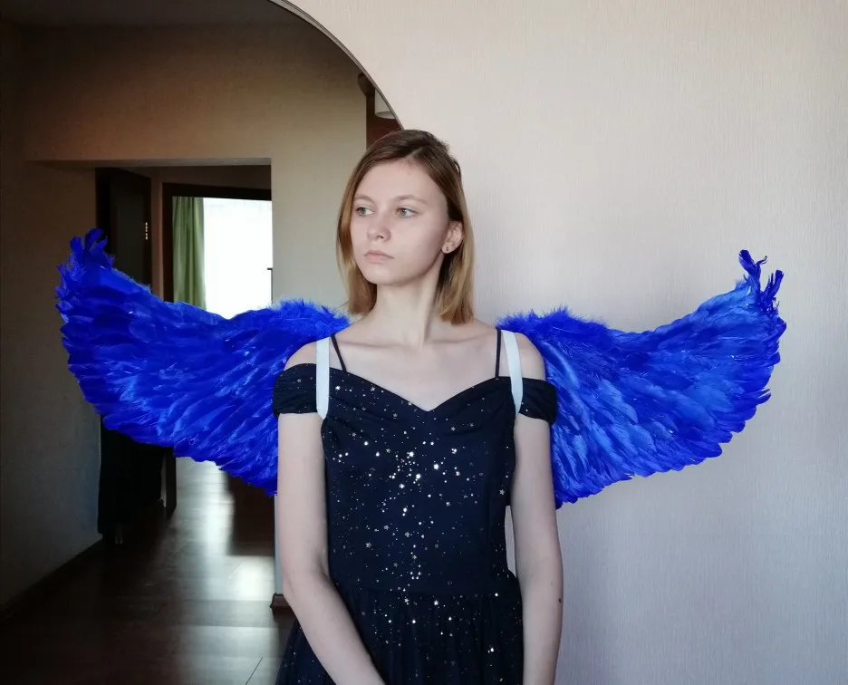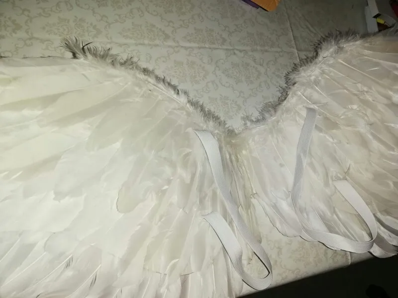 Хорошие крылья! Немного где-то перья отклеились, но можно подклеить самой) Единственный минус - это белые резинки. Было бы хорошо, если бы можно было выбирать цвет резинок. Я хотела бы чёрные резинки :(. А так все просто замечательно!