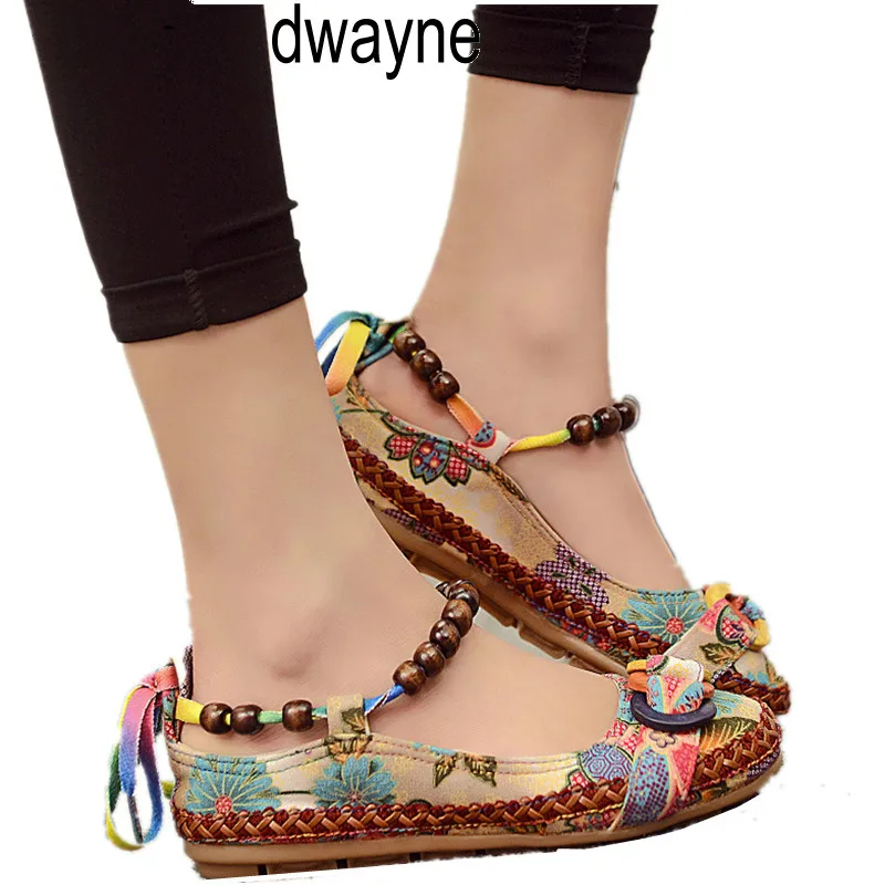 Размера плюс повседневная обувь на плоской подошве; Женские лоферы с ремешком на щиколотке; Zapatos Mujer; Обувь с этнической вышивкой в стиле ретро; ghn8
