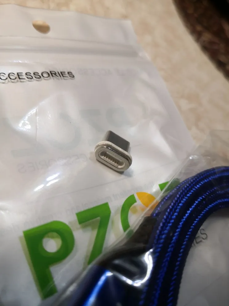 товар отличный, зарядка идёт, у меня realme x2, заряжает в режиме турбо от быстрой зарядки, кабель в прочной синтетической тканевой оплётке наконечники металлические(черный металл с надписью POZOZ) и до светодиода со стороны typ-C, светодиод синий показывает что кабель исправен. единственное на фото видно что магнит в разъёме typ-C установлен немного криво есть зазор, на работоспособность не повлияло. товар советую к приобретению.