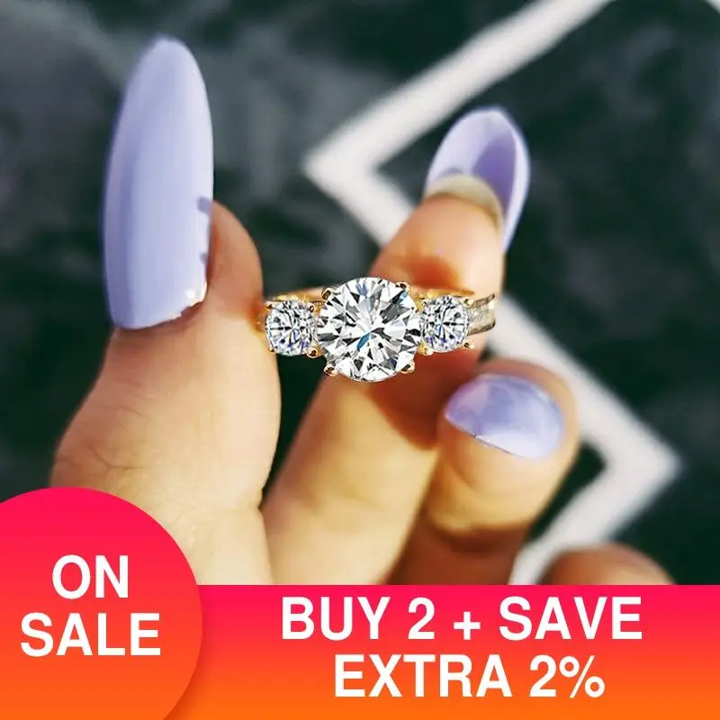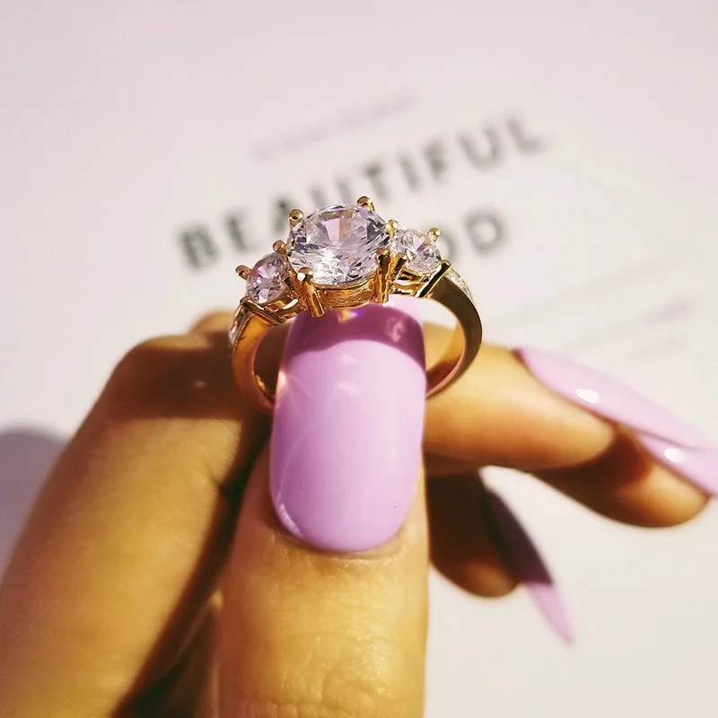 Обручальные кольца с тремя камнями золотого цвета, модный стиль, кольца с фианитом 3 карата, ювелирные изделия, подарок, специальное уникальное искусственное кольцо