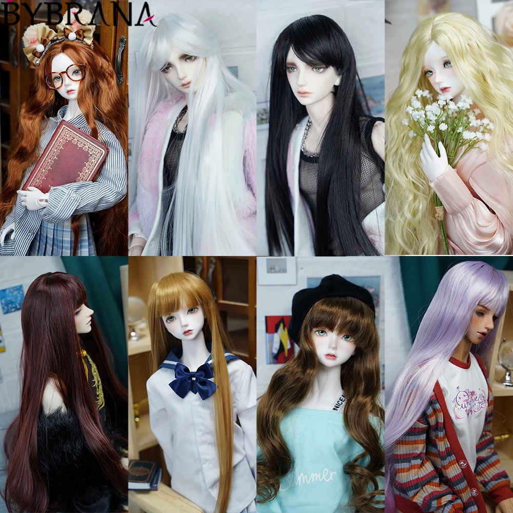 Bybrana, длинные прямые волосы для девочек, черные волосы, 13, 14, парики для шарнирных кукол, бесплатная доставка