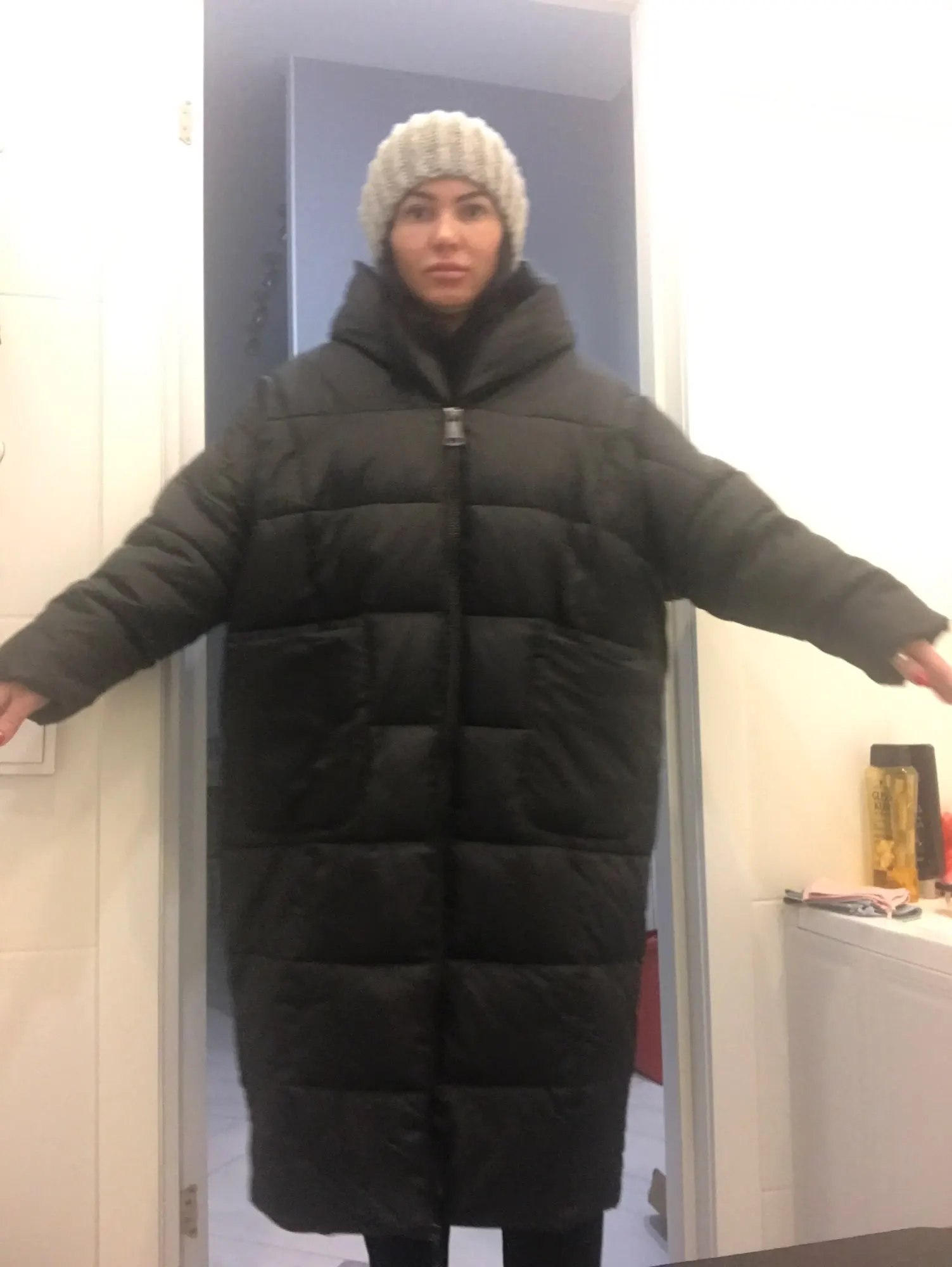 Пуховик выполнен очень хорошо, но он очень большой, просто такой стиль(оверсайз) мне не подходит, а так все отлично