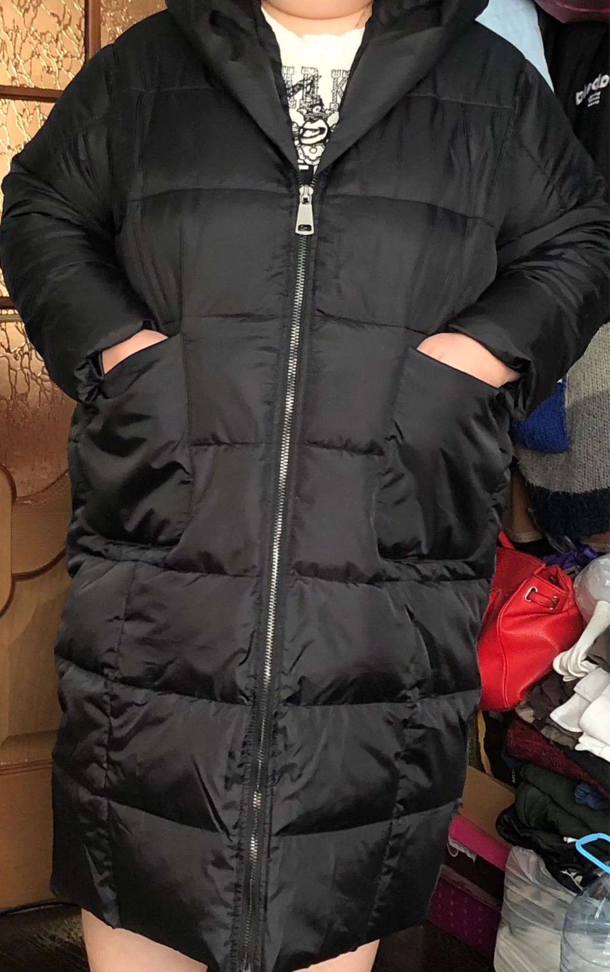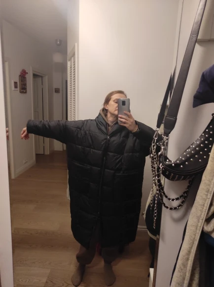 Отличный пуховик Спасибо продавцу! На параметры грудь 100, бедра 115 очень даже хороший оверсайз(на фото я в огромной флисовой толстовке). Теплый, но не слишком думаю на -20 будет комфортно, тем более под него можно ещё один пуховик надеть) Рукава, в моем случае, нормальной длины единственное, что смутило, то что горло открыто прилично так, но я всегда ношу суды, поэтому для меня не критично. Мой рост 164,длину видно. Продавец общительный и внимательный, до Магнитогорска дошел за 2 недели. Спасибо