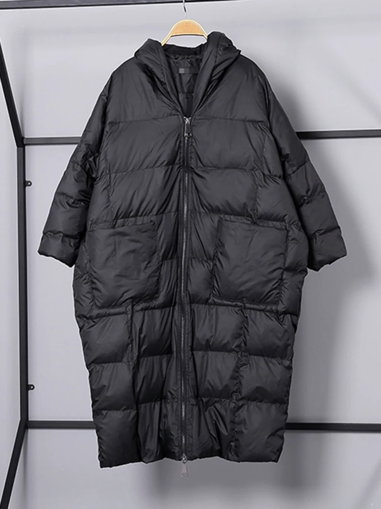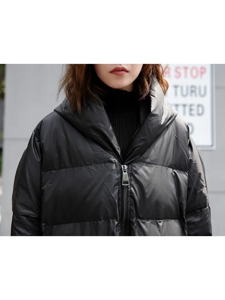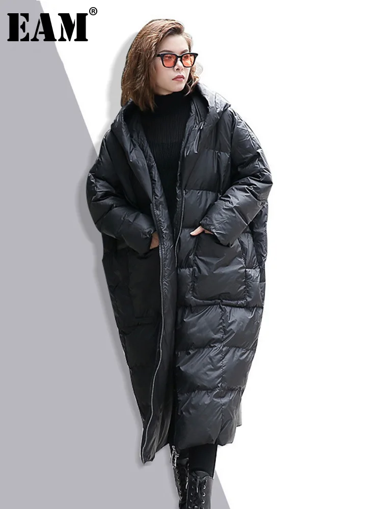Женская парка с капюшоном EAM, однотонная черная Теплая стеганая куртка большого размера, зима 2021