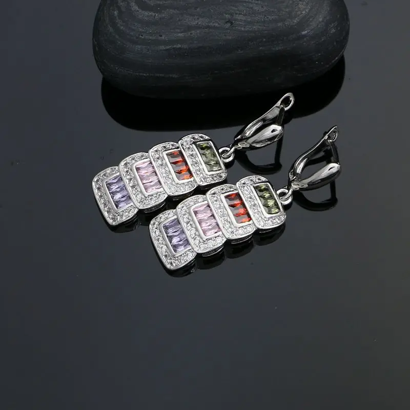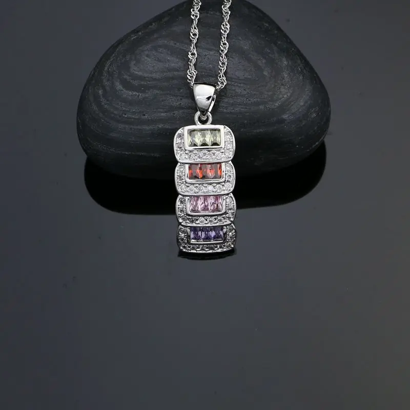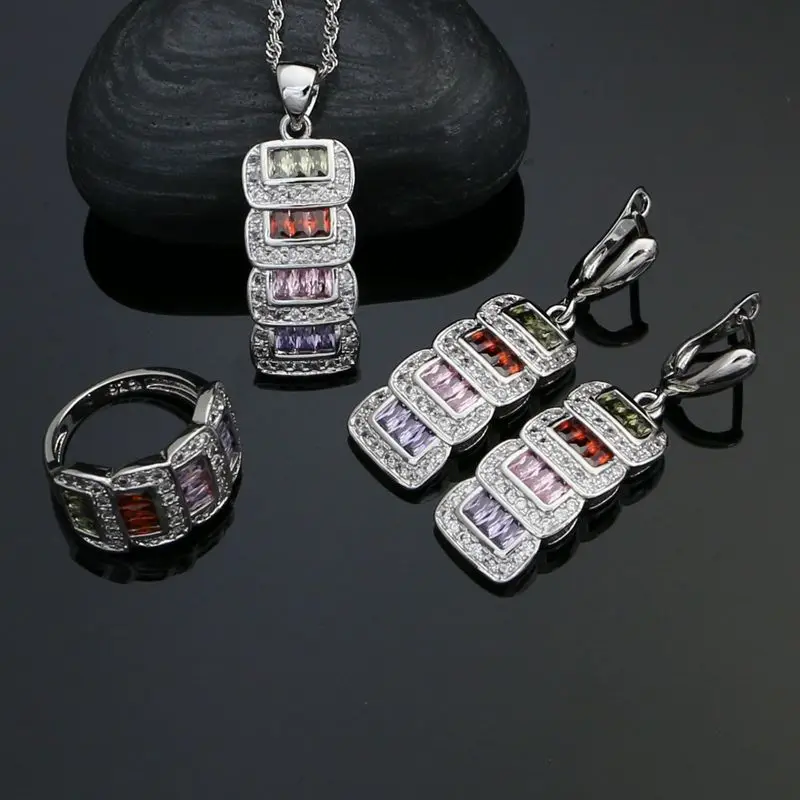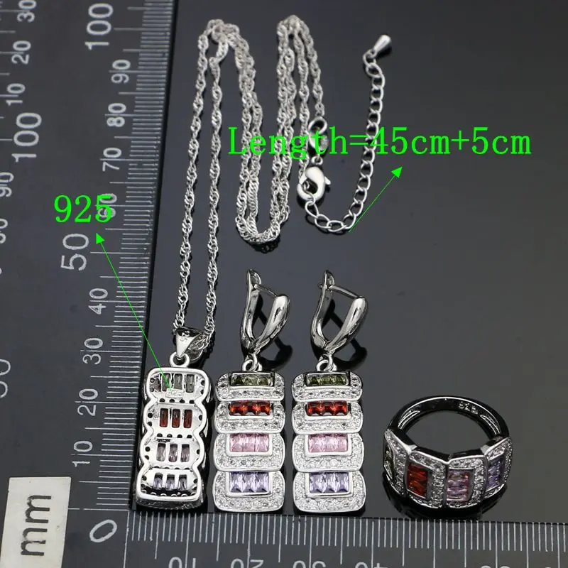 Набор свадебных ювелирных изделий из серебра 925 пробы для женщин, разноцветный кубический цирконий, серьги с белым кристаллом, подвеска, кольцо, ожерелье
