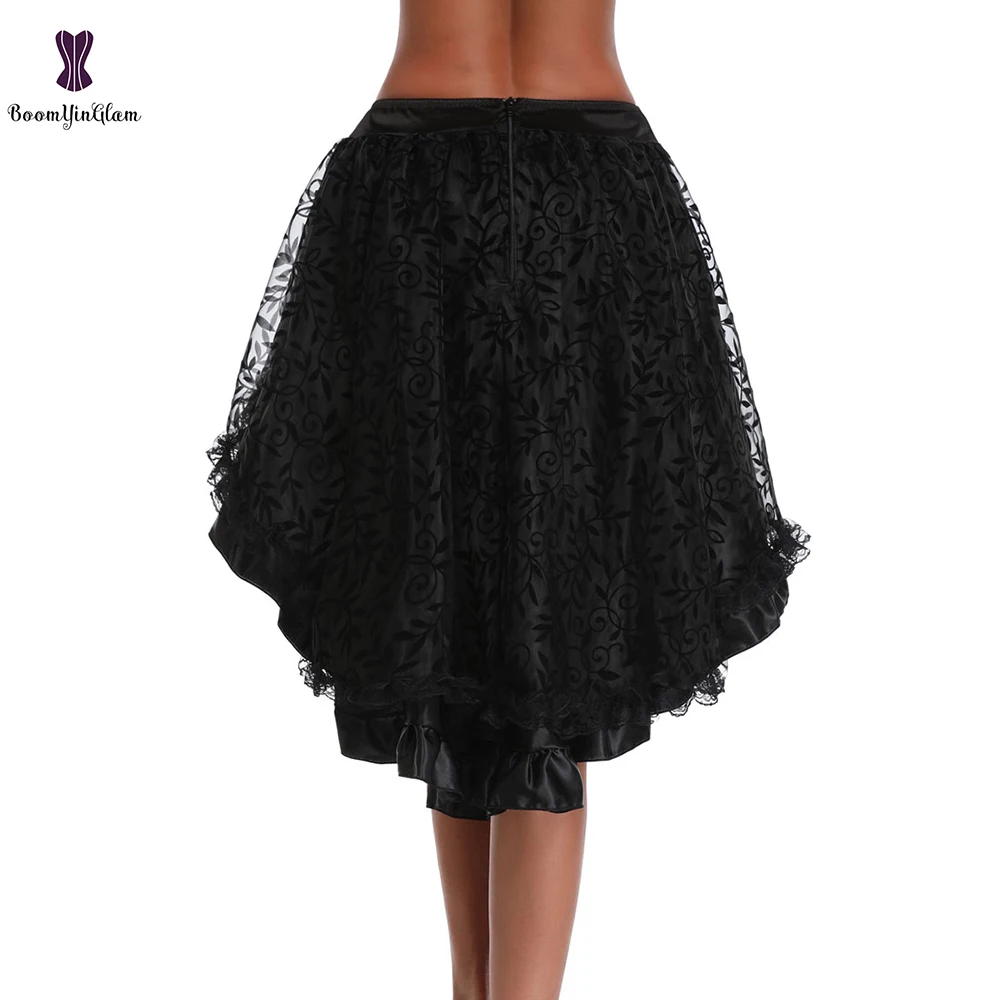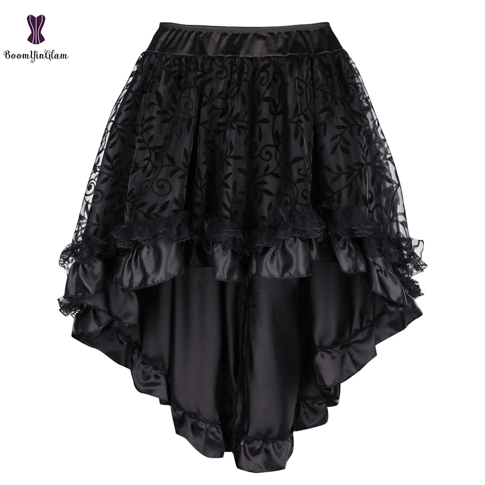 Атласная кофейная черная юбка, Женская кружевная ассиметричная юбка на молнии сзади, юбки с цветочным принтом размера плюс XXXXXXL, готические женские юбки