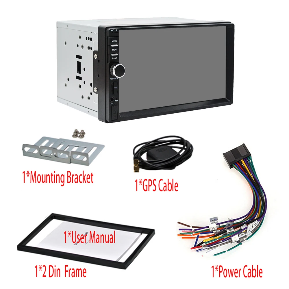 Посылка1 стерео плеер, 1 силовой кабель, 1 GPS антенна, 2 Usb-кабеля, 1 RCA кабель, 2 установочных чипа, 4 винта, 1 руководство пользователя на английском языке