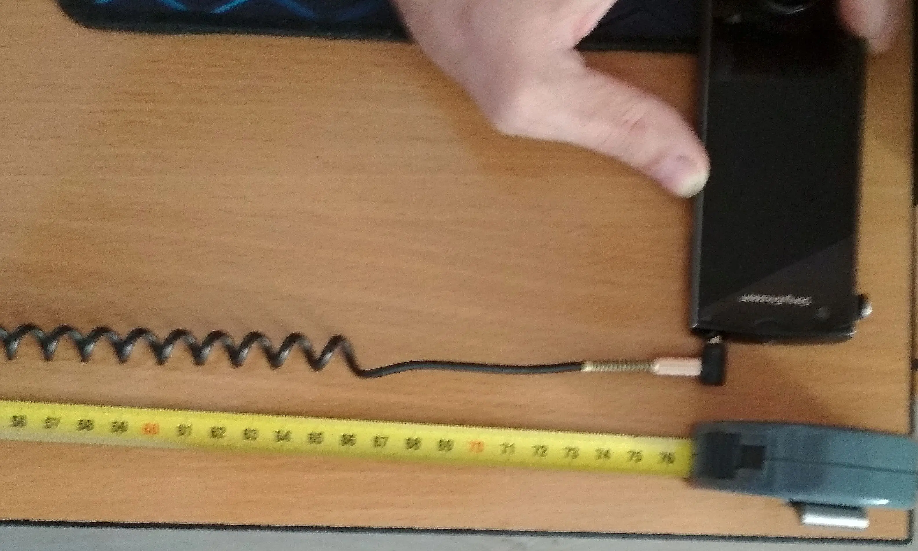 Указана длина 2 метра. Это видимо длина если полностью растянуть его в прямую линию. По факту получается 40 сантиметров. Растянуть до максимума, в котором возможно ещё можно будет пользоваться, это около 75 сантиметров. Т.е. если нужен скрученный провод чтобы был допустим 1 метр, то нужно искать чтобы был в описании наверное 4 метра.