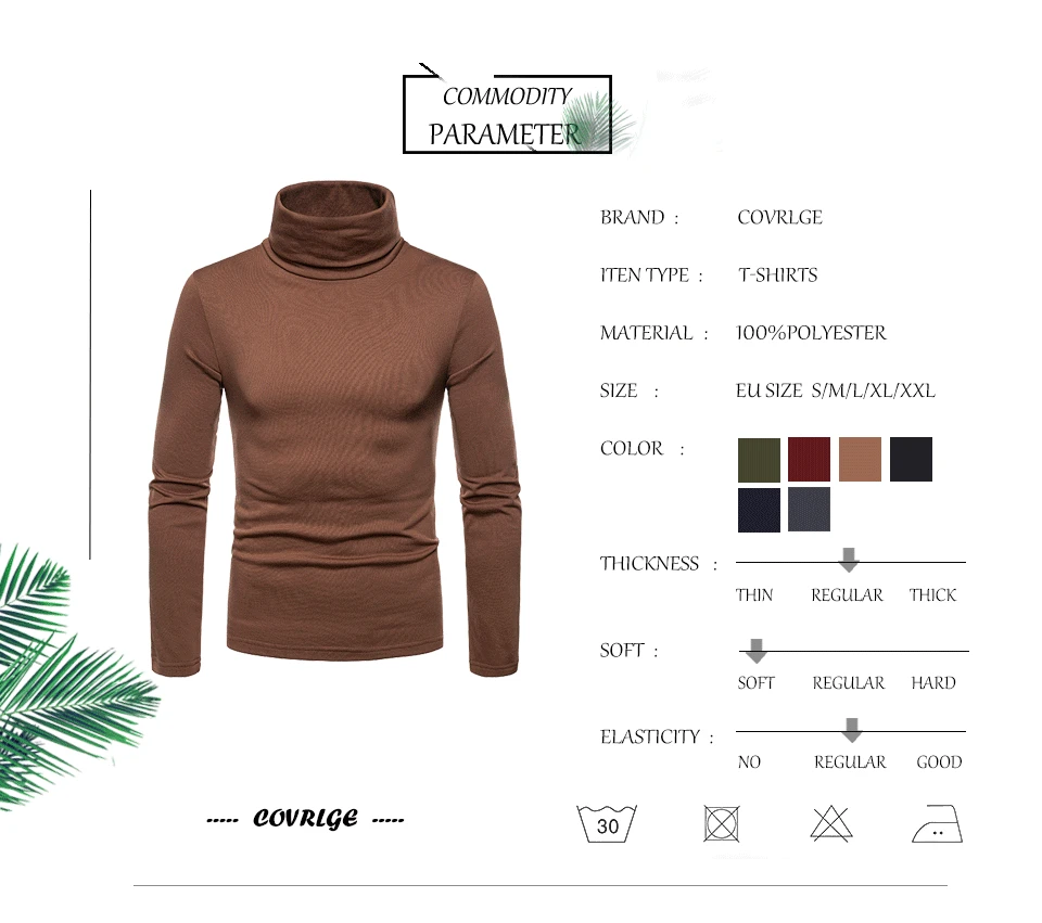 Мужская футболка Covrlge, осенняя теплая футболка с высоким воротником для фитнеса, футболка с длинным рукавом, MTL100