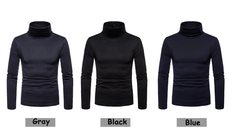 Мужская теплая водолазка с высоким воротником и длинными рукавами, ...