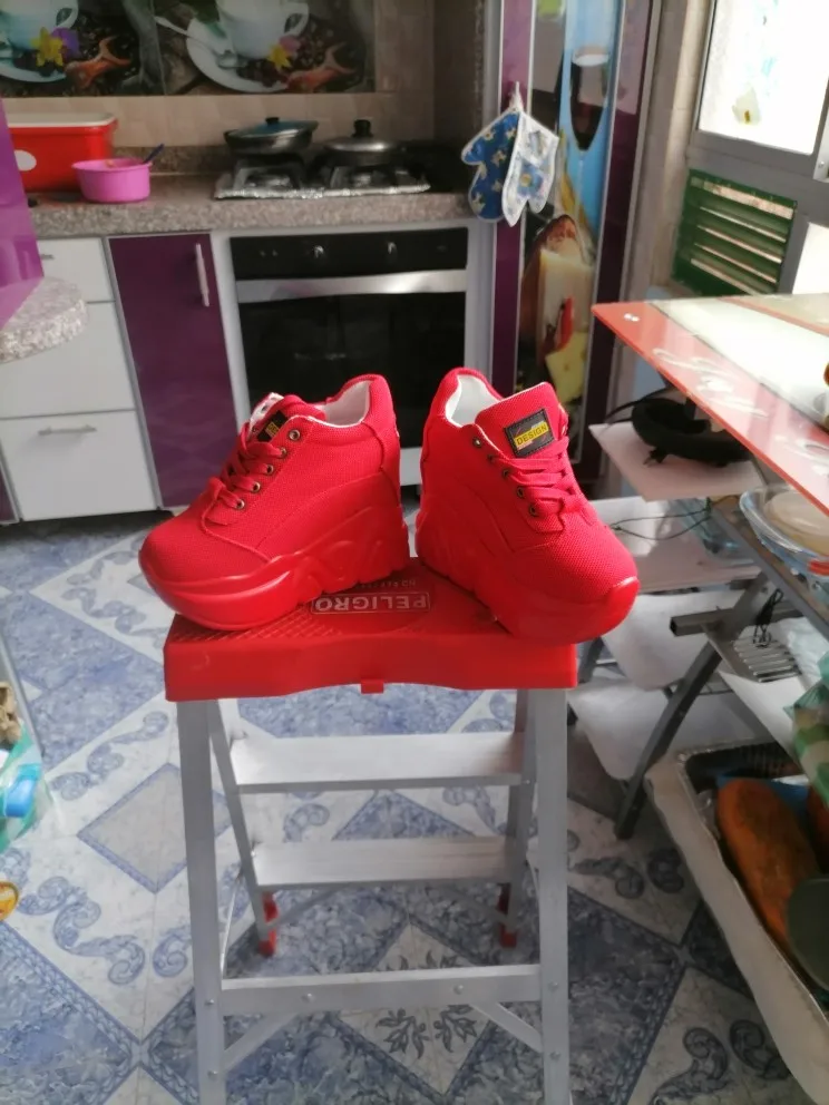 Женские кроссовки на танкетке 12 см, на липучке, весенне-осенние