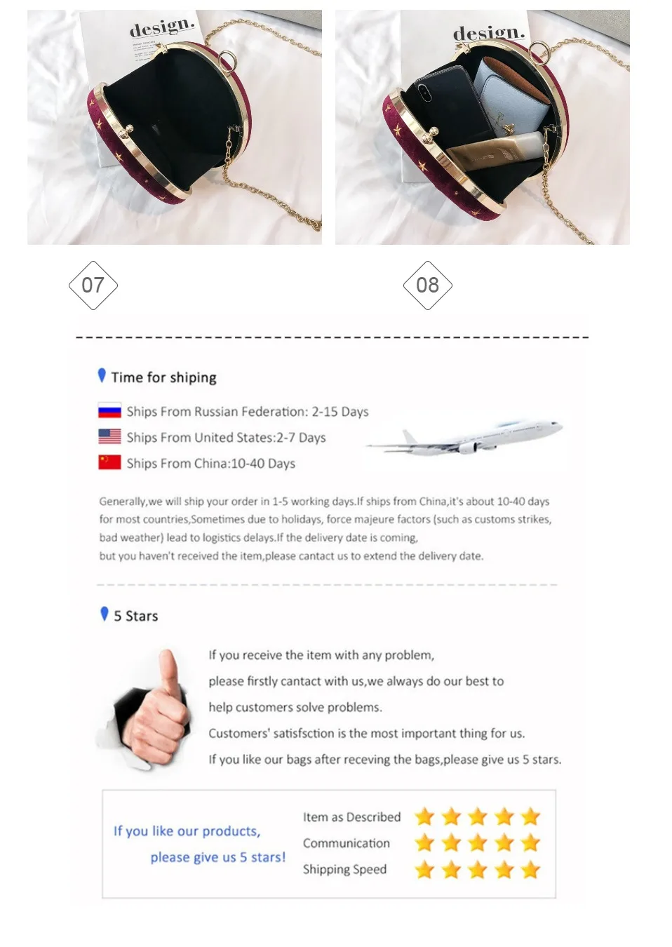 Сумочка красивая, точно, как на фото, но очень хлипкая застежка. Приехала сразу надломанная, и сломалась (отлетело кольцо) после пары открытий. Чисто декоративная вещица не на долгое использование