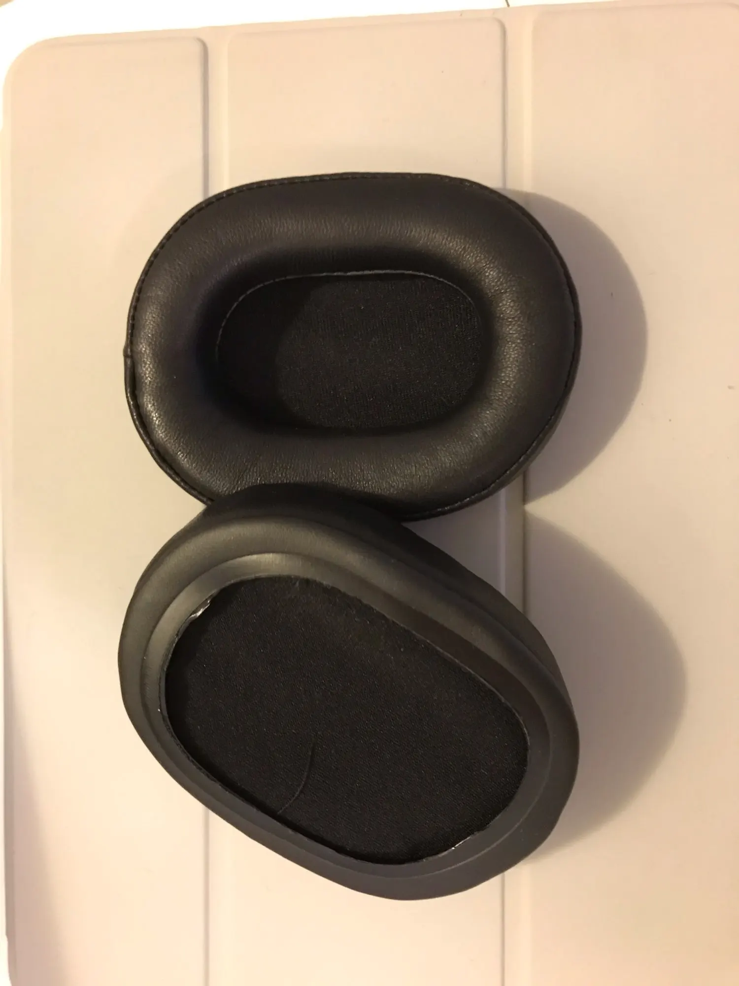 Отличные амбушюры, сначала не понимал, как их натянуть, но всё оказалось довольно просто, есть видео на Ютубе. Пахнут овчиной (очень приятно). На ощупь мягкие, в разы лучше потрёпанных оригинальных.