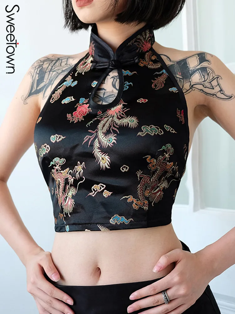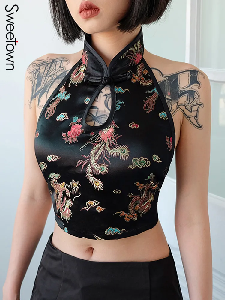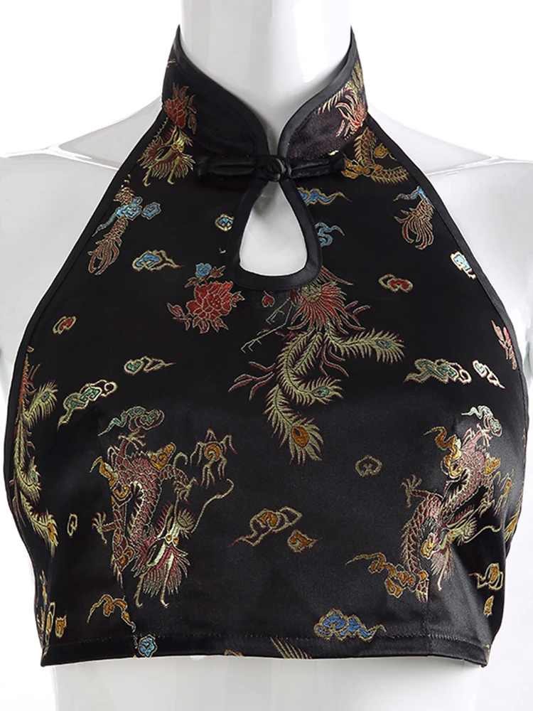 Женский винтажный топ с драконом, на шнуровке