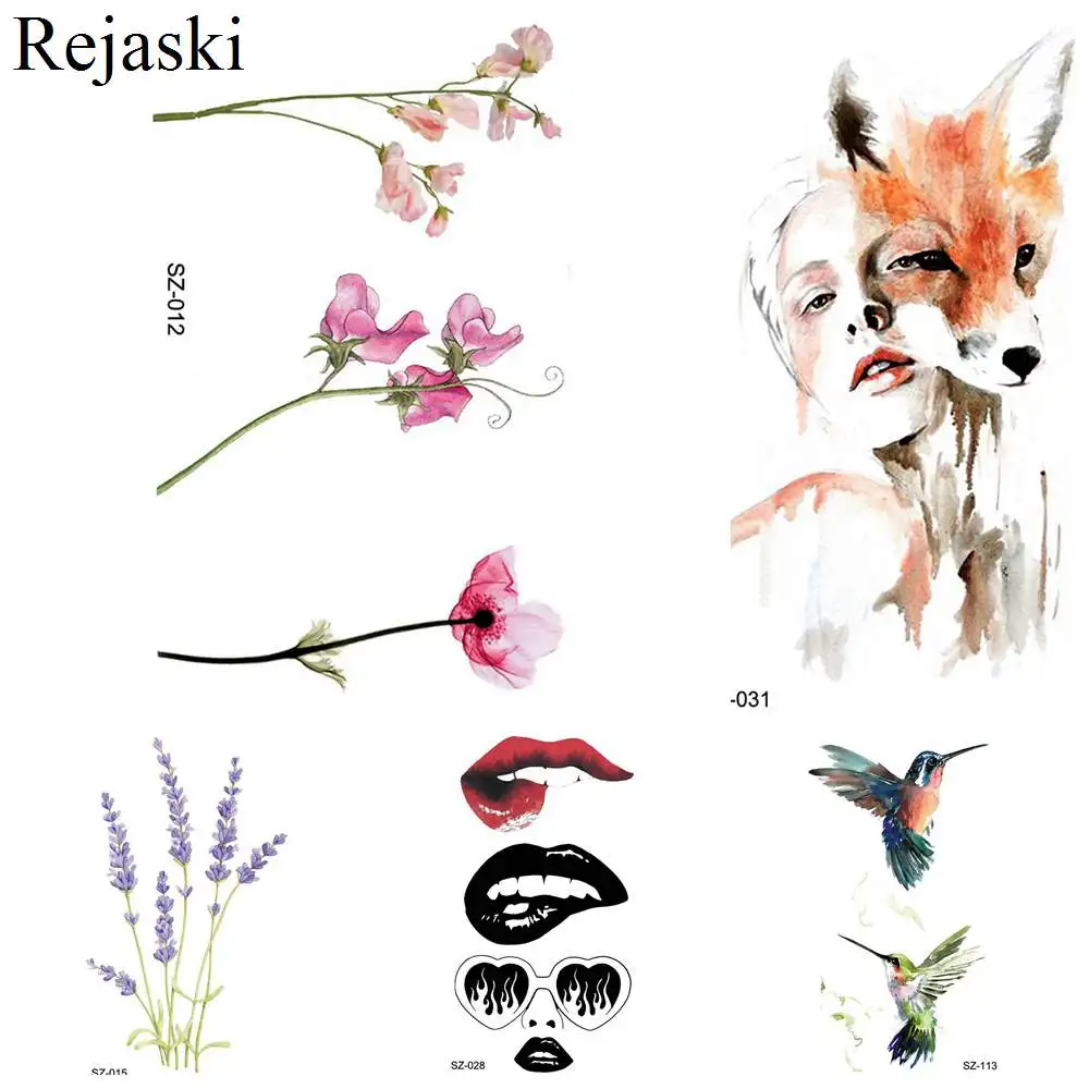 Красочная цветочная временная татуировка Rejaski, женские наклейки на руку, искусство тела, искусство, маленькая лисица, флэш-тату, сексуальная губа