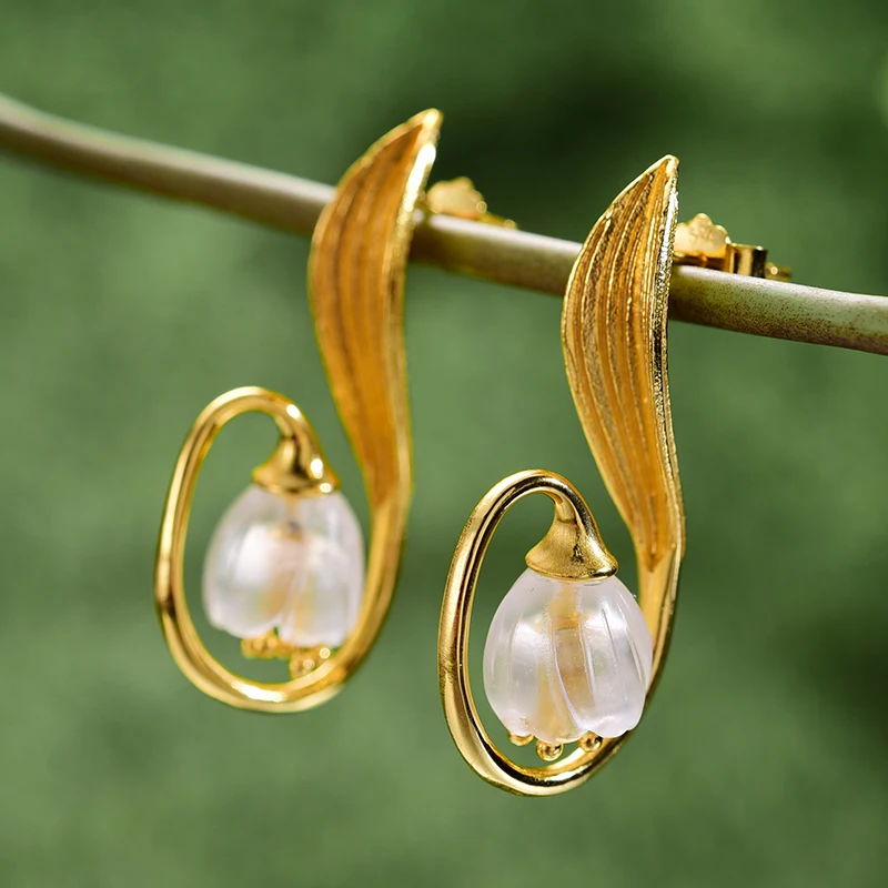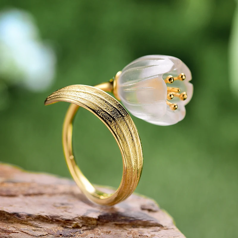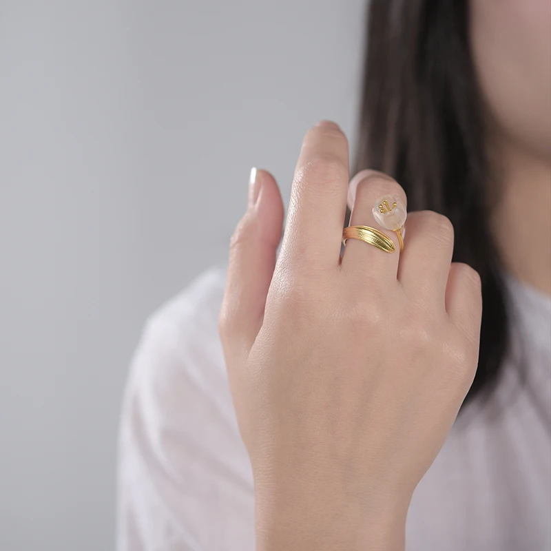 Lotus Fun реальные 925 пробы серебро Природный кристалл ручной работы Fine Jewelry ландыш цветок комплект ювелирных изделий для Для женщин