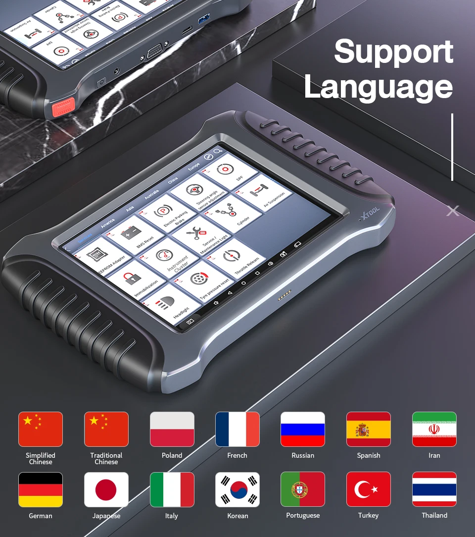 XTOOL A80 автомобильный диагностический сканер может работать на более чем 85 + американских отечественных, европейских и азиатских марок и моделей, более 10000 автомобилей, широкое покрытие транспортного средства может предоставить вам почти каждый диагностический вариант, который может понадобиться механику. С помощью многоязычного меню вы можете легко переключаться между языками, позволяя механикам избегать языковых преград и фокусироваться на данных об автомобиле.