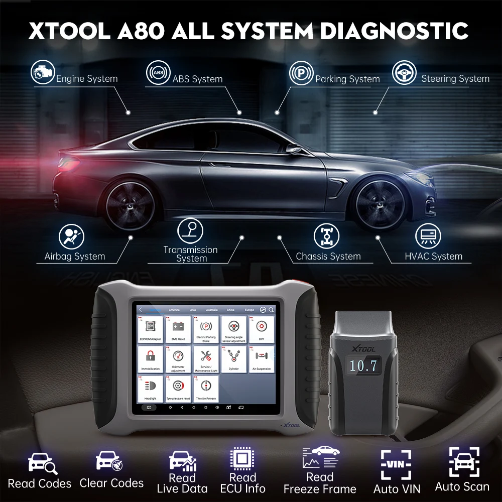 Новинка 2021, XTOOL A80, автомобильные профессиональные диагностические инструменты, кодирование ЭБУ, соответствие, испытание на приведение в действие, полный системный сканер, сенсорный экран системы Android, 2 Гб ОЗУ + 64 ГБ, 3 года бесплатного обновления, гарантия 5 лет
