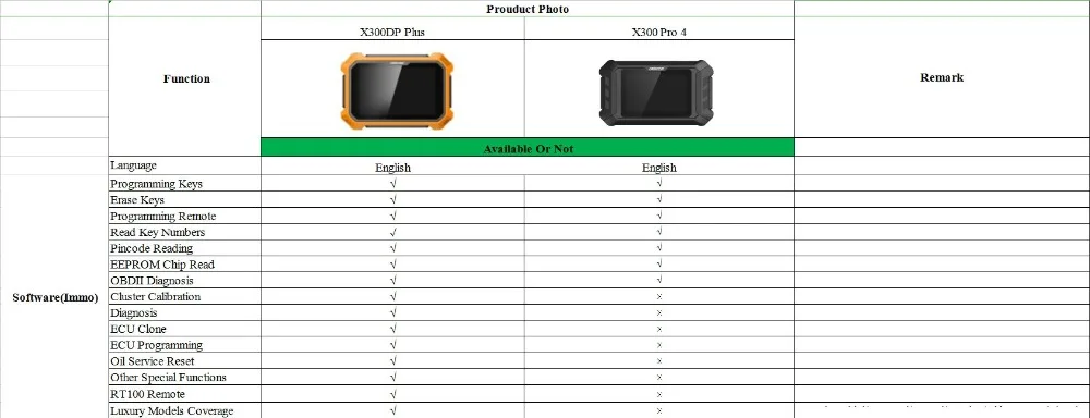 OBDSTAR X300 Pro 4 Список функций программиста: