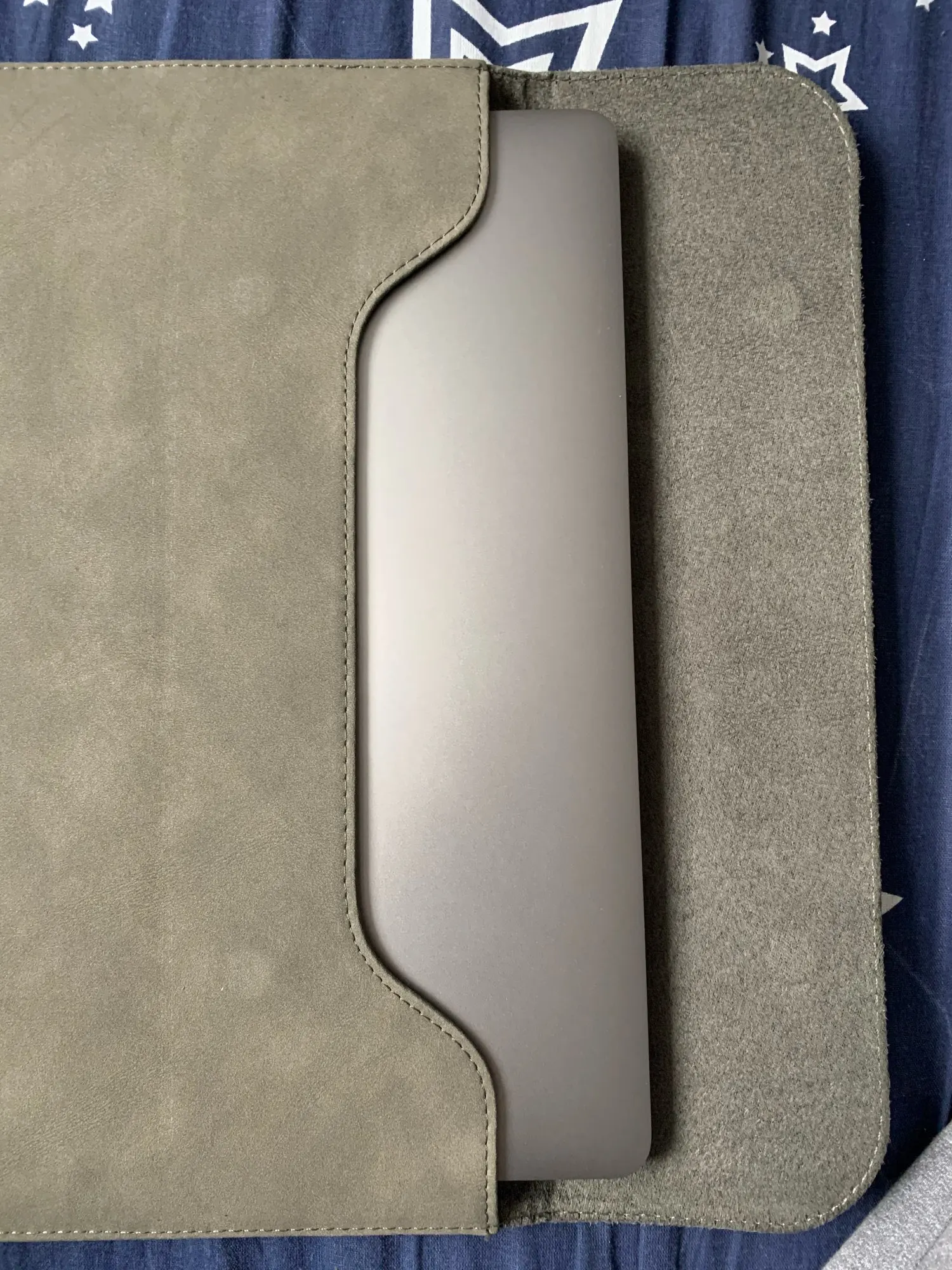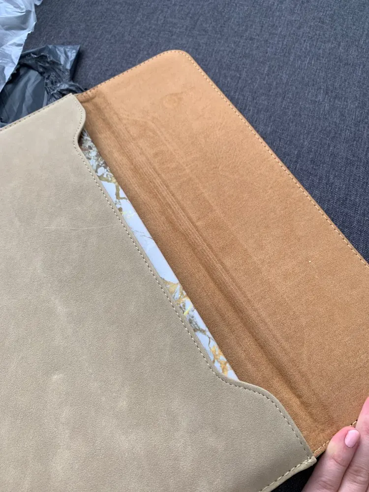 Сначала о чехле: пришёл согнутый наполовину, так, что осталась линия сгиба по центру, но через некоторое время расправилось, думаю в этом виновата Почта России. В целом чехол сделан довольно хорошо mbp 13 спокойно влезает, претензий нет, материал похож на замшу, которая используется в кроссовках/кедах. А вот отправка заняла довольно долгий срок, поскольку магазин решил уточнить мое отчество в сообщениях от магазина, где обычно 99+ различных сообщений о скидках, соответственно никто туда и не смотрит. Магазин сказал, что по правилам почты России отчество необходимо для отправки, и из-за этого не отправлял товар достаточно долго. Когда я решил уже писать в магазин, увидел, что был запрос, отправил ФИО, на что мне ответили, что уже отправили товар. Вопрос зачем было из-за этого задерживать отправку, если товар все равно отправили без этой информации? Итог: доволен товаром, не доволен сроками отправки.