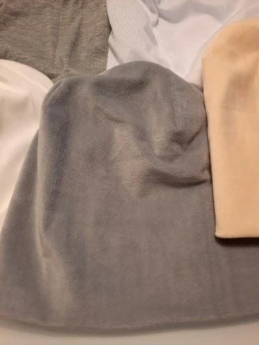 хорошая, приятная бархатная шапочка на прохладную погоду.