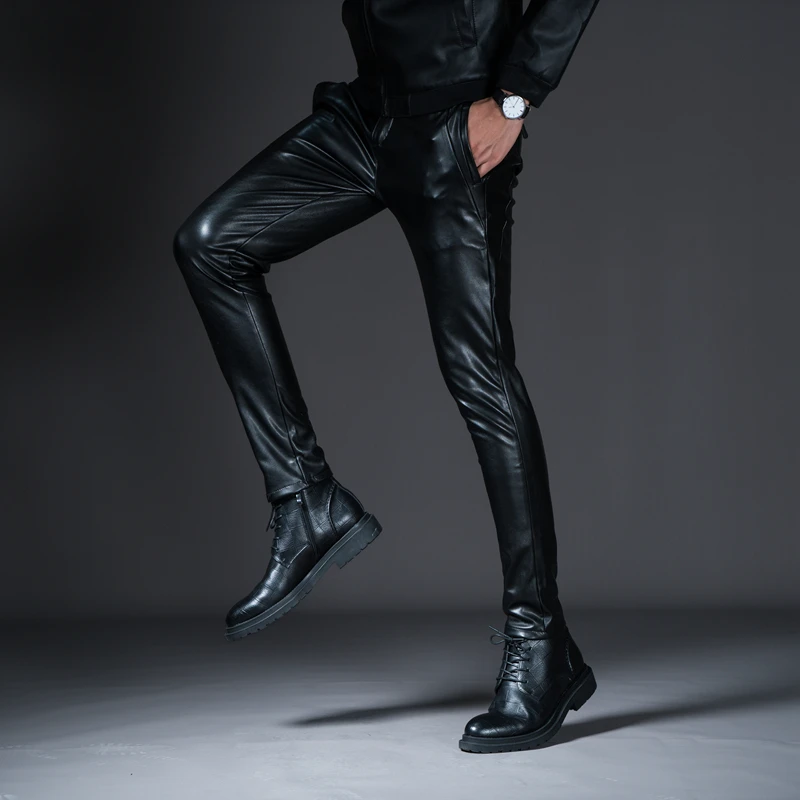 Новые зимние мужские облегающие байкерские кожаные брюки, модные мотоциклетные брюки из искусственной кожи для мужчин, одежда для сцены и клуба