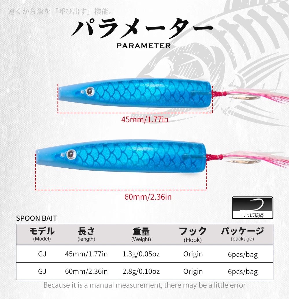 6 шт., рыболовные приманки Yumizuno из твердого пластика, 45 мм, 60 мм