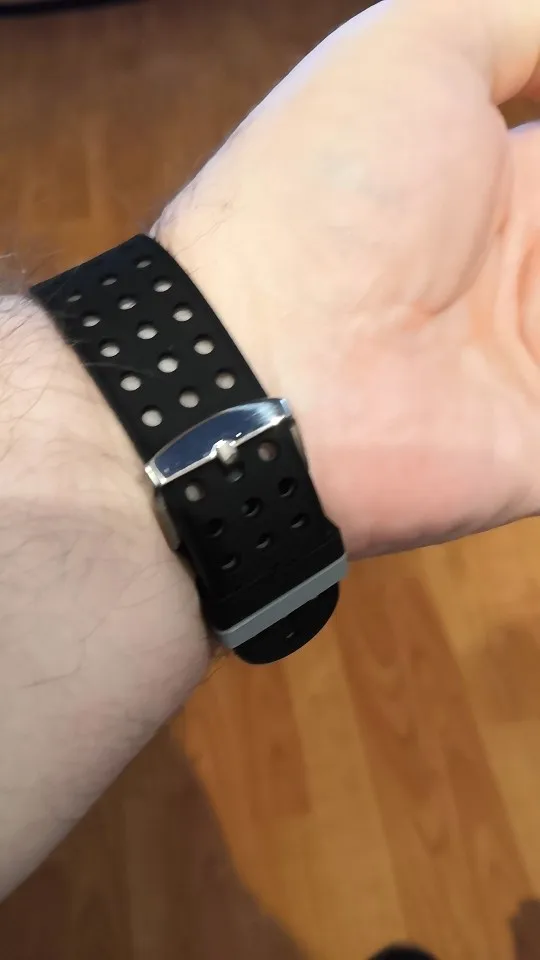 Ремяшок отличный держит хорошо не набирает и комфортно сидит 4 звезды! 4 звезды потому что прямоугольнички сползают и это бесит так как болтается ремешок