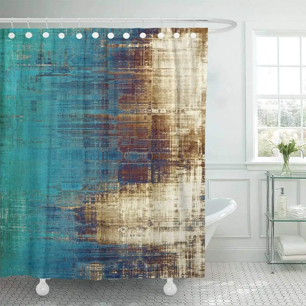 Занавеска для душа старая винтажная узорная желтая бежевая коричневая зеленая синяя Белая настенная ванная комната