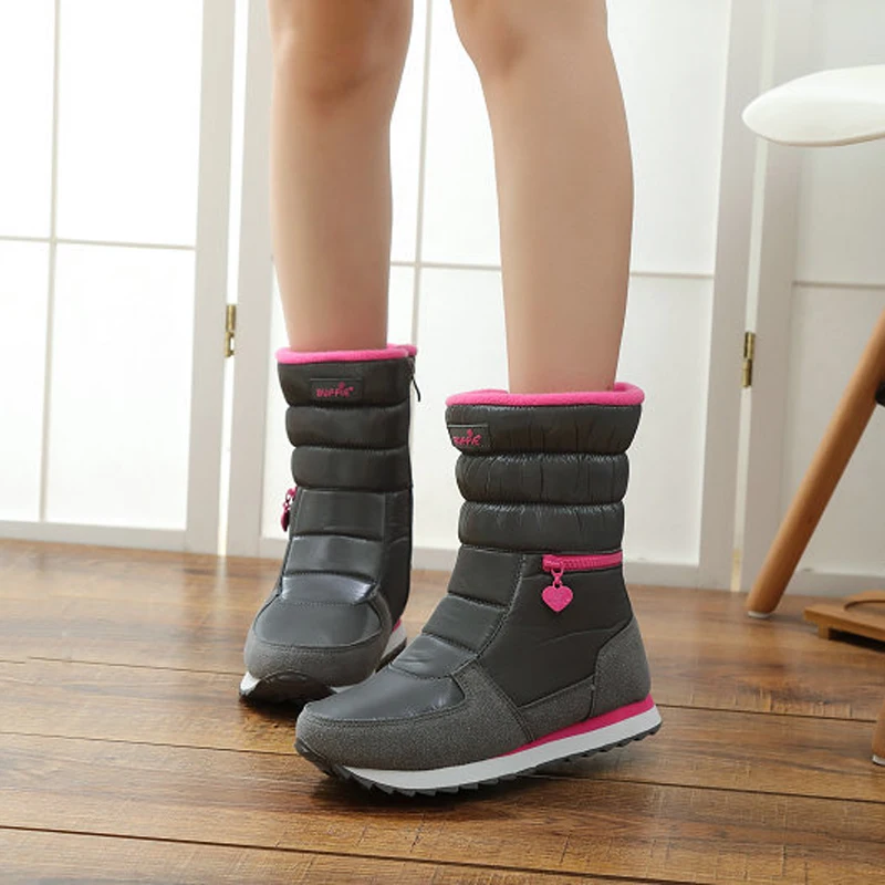 Женские зимние ботинки на платформе, толстая плюшевая зимняя обувь на молнии, водонепроницаемые Нескользящие женские зимние ботинки