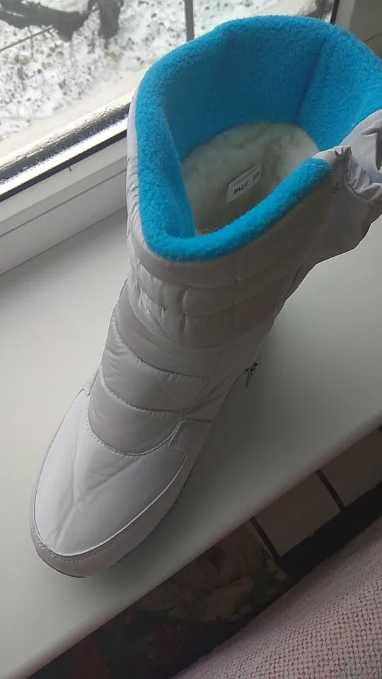 почитала отзывы и зря заказала на свой 36 размер,6 - это 37 размер,они очень большие,размер в размер и не покупайте больше на размер,они на очень очень широкую ногу,только с брюками носить придется,материал прикольный,блестящий,как балоний,но видимо с пленочкой,а внизу вставки из кожзама лаковый,попробовала облить водой,вроде стекает,клей виден в некоторых местах,но такого цвета купить невозможно дутики,поэтому заказала здесь,но в магазинах белые дутики можно и дешевле купить,качество одинаковое везде,но этот цвет бесподобен,к покупке советую,если не заморачиваетесь с качеством,но не сильно плохое,за 1500 если бы продавали это их красная цена