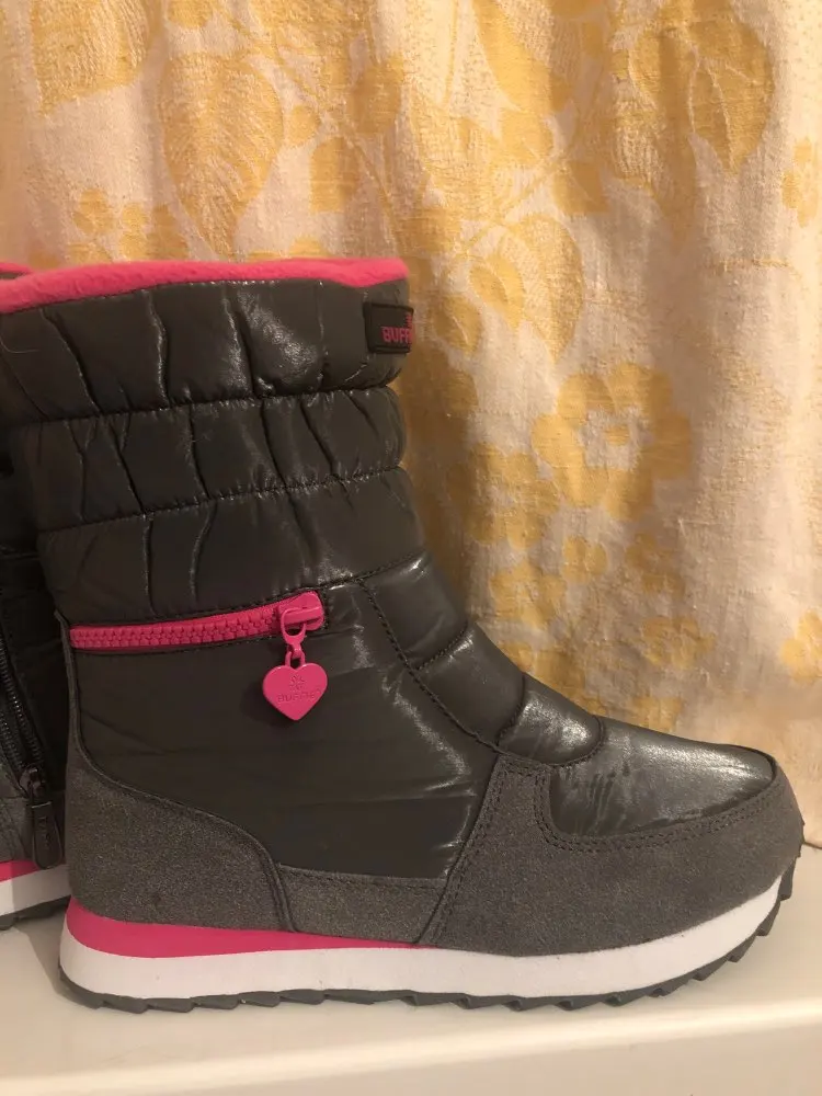 Хорошие ботинки. Не скользят,тёплые. На 36 и заказала 36,пальцы в самом носу. На простой насос хорошо ,так как они тёплые.