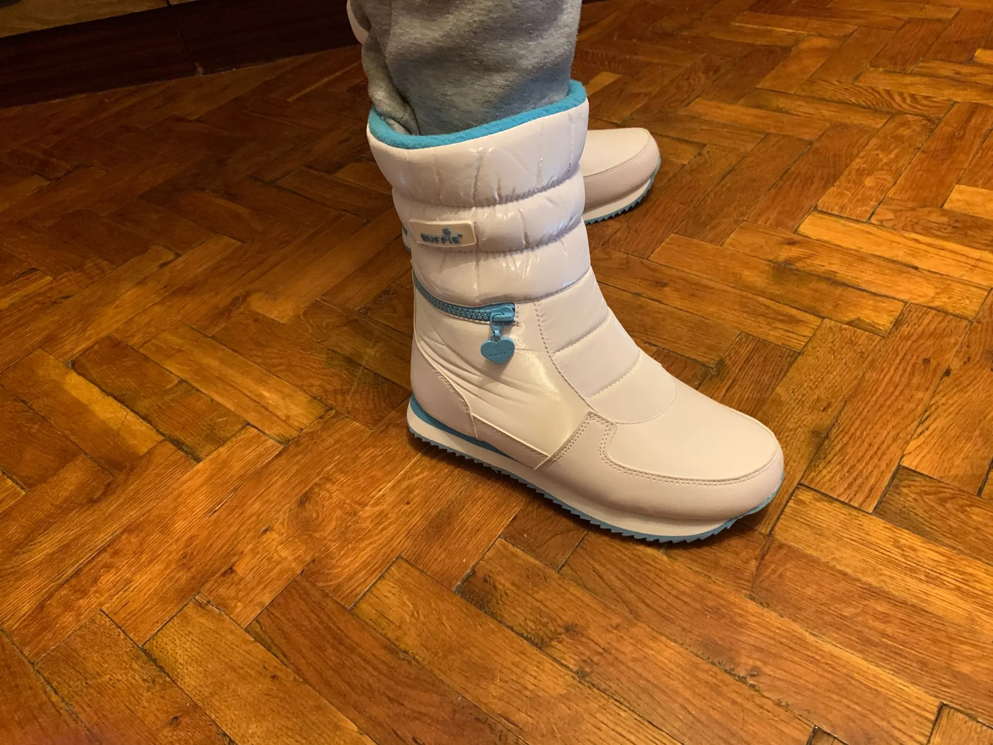 Сапожки симпатичные. Идут размер в размер, даже меньше. Смутил отзыв, что на два размера кто-то больше взял и нормально, идиотка какая-то писала. У меня 24,5, взяла по таблице 8, одела на махровый носок, нормально, но если бы 7 были бы идеально. Я люблю, когда обувь крепко зафиксирована. Подошва не очень толстая, ножку обхватывают хорошо, снег не будет западать.