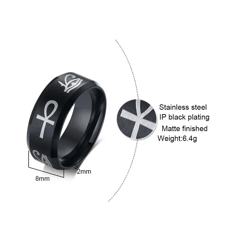 Кольцо с крестом глаз хора мужскоеженское, из нержавеющей стали черного цвета, 8 мм
