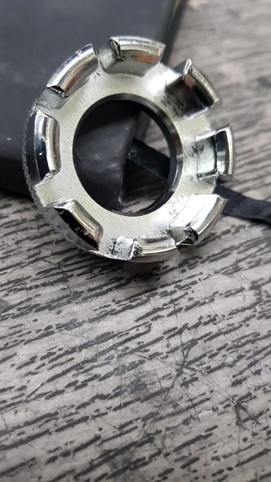 Думал, что будет меньше)) Диаметр круга - 4см) Имеет прорези под разные размеры спицевых гаек, под велосипедные стандартные тоже есть. Всё нормально, думаю, будет удобно крутить. И этот ключ массивный, думаю цеплять будет хорошо, не будет слизывать металл, как могло бы быть на дешёвых тонких спицевых ключах.