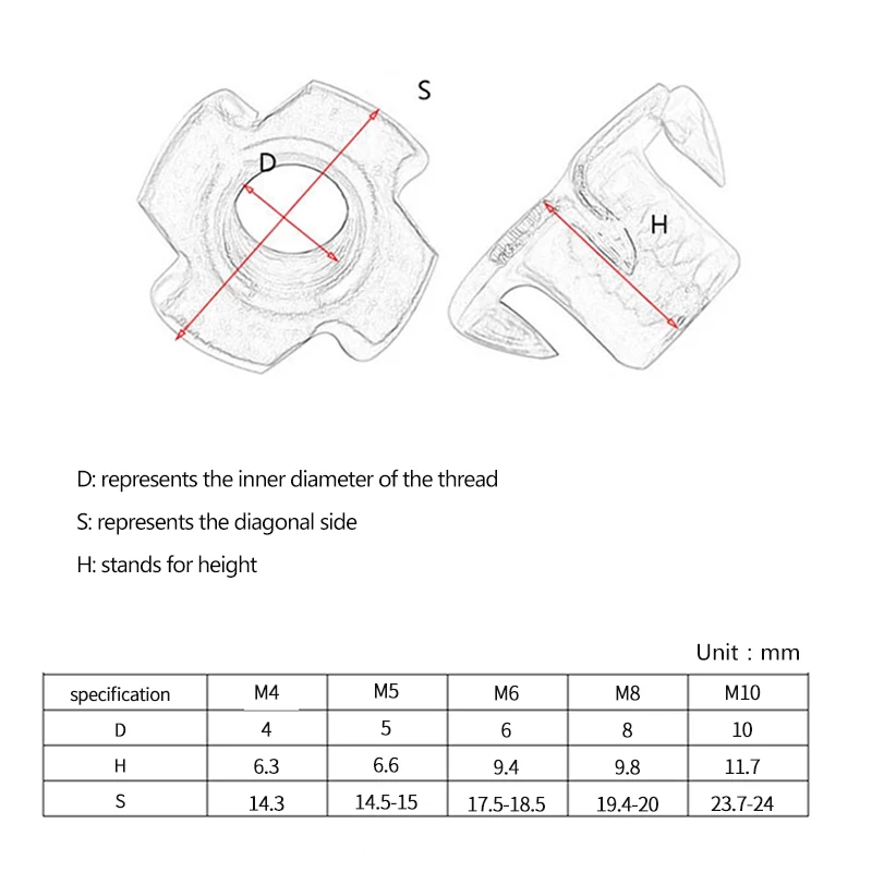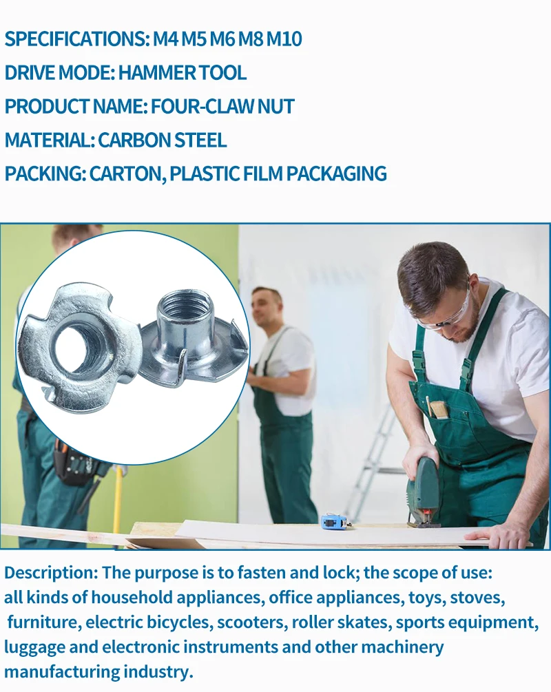 LUHUICHANG 20 шт. M4 M5 M6 M8 M10 M12 оцинкованная гайка с четырьмя когтями спикер гайка t-гайка глухая зубчатая гайка тройник мебельная фурнитура