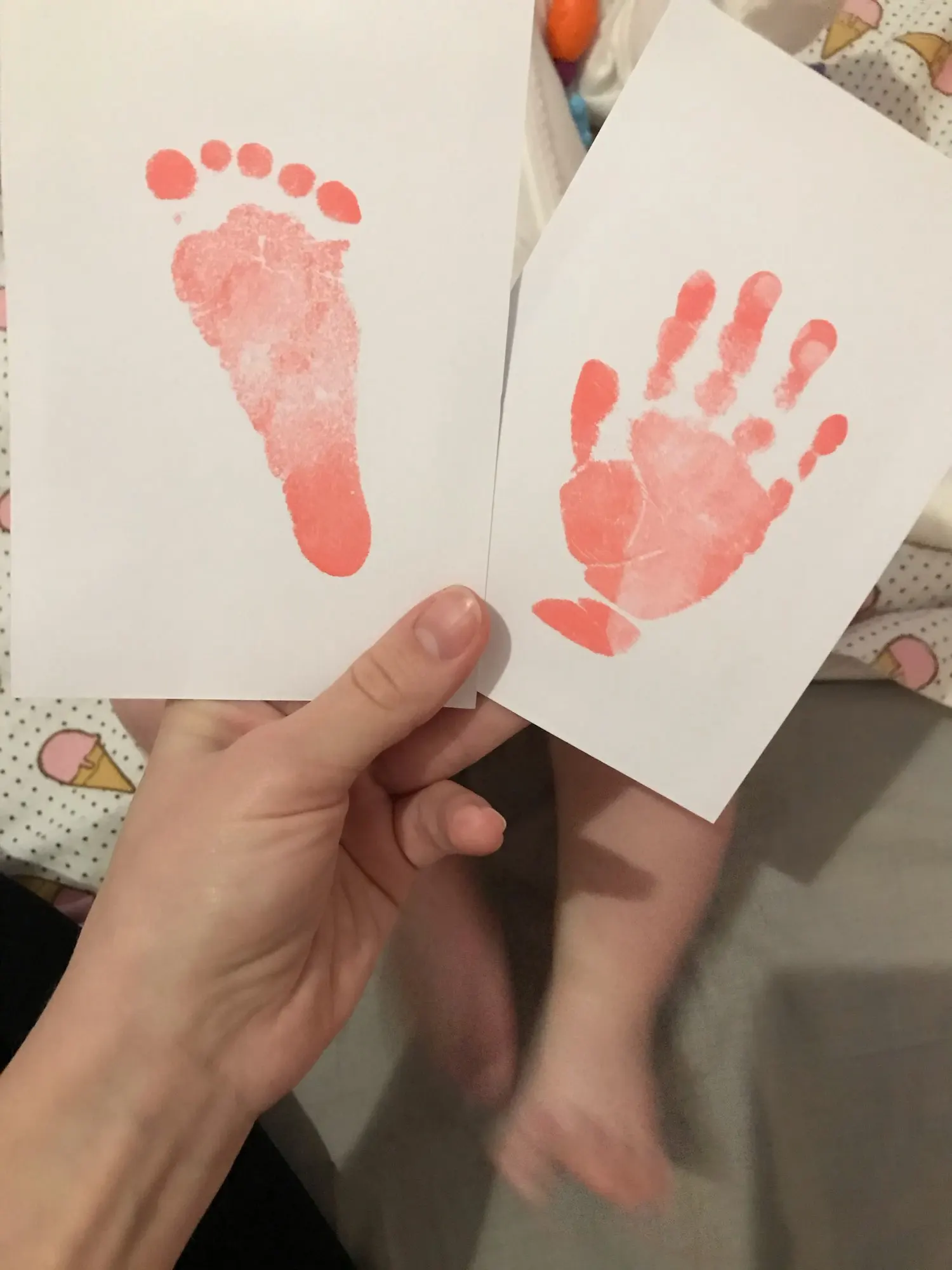 очень понравилось. только будь ребенок старше, уже нога не поместилась бы (ребенку 4 месяца). Я брала 2 упаковки, но даже с одной получилось сделать 2 отпечатка